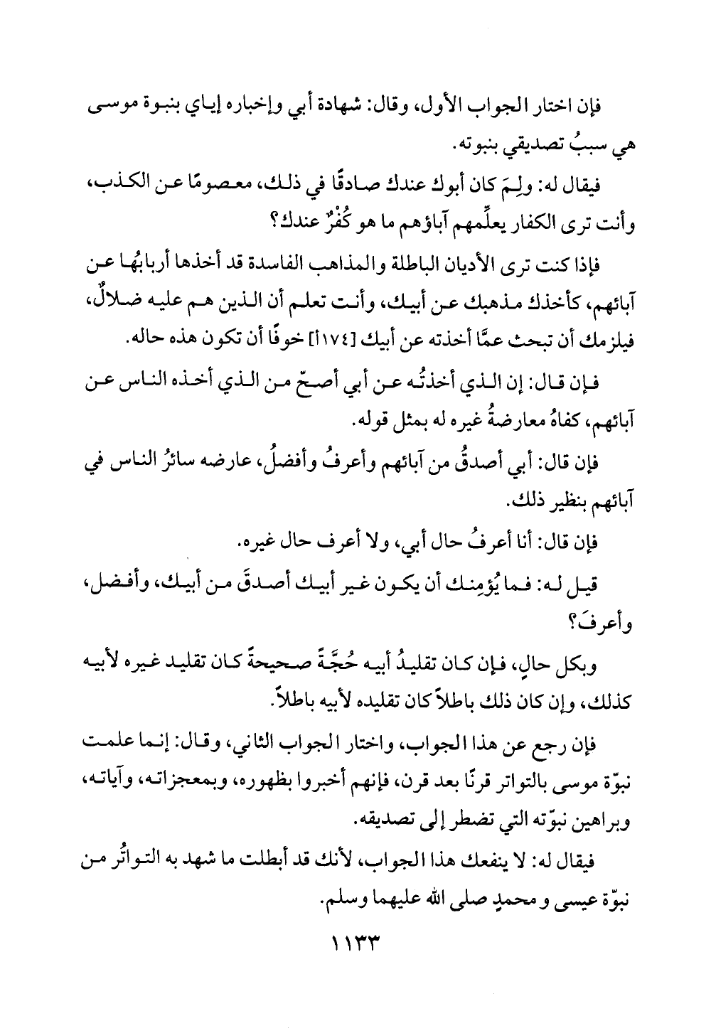 فيقال له: لا ينفعك هذا الجواب، لأنك قد أبطلت ما شهد به التواتُر من نبوّة عيسى ومحمدٍ صلى الله عليهما وسلم.