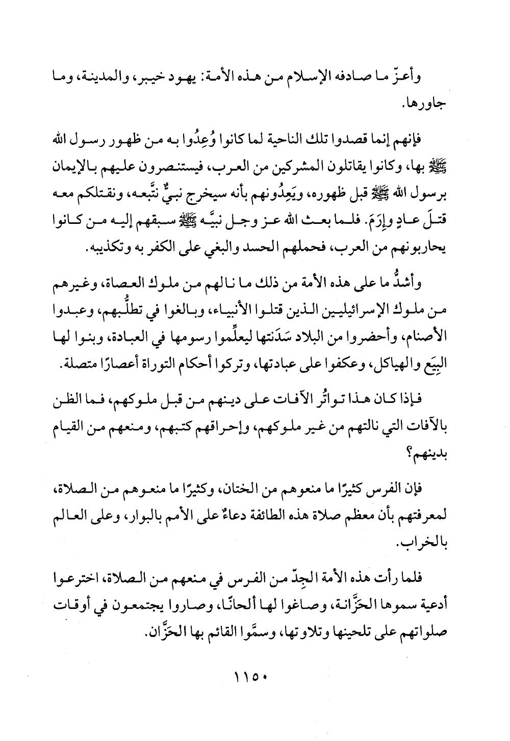 فإن الفرس كثيرًا ما منعوهم من الختان، وكثيرًا ما منعوهم من الصلاة، لمعرفتهم بأن معظم صلاة هذه الطائفة دعاءٌ على الأمم بالبوار، وعلى العالم بالخراب.