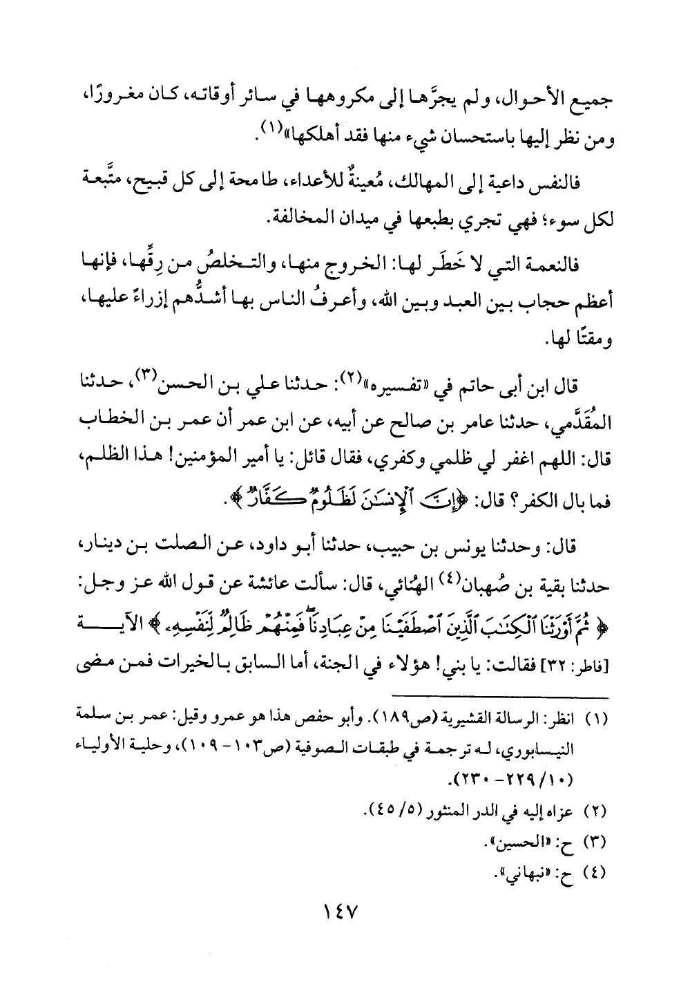 (¬1) انظر: الرسالة القشيرية (ص 189)، وأبو حفص هذا هو عمرو وقيل: عمر بن سلمة النيسابوي، له ترجمته في طبقات الصوفية (ص 103 - 159)، وحلية الأولياء (10/ 229 - 230).