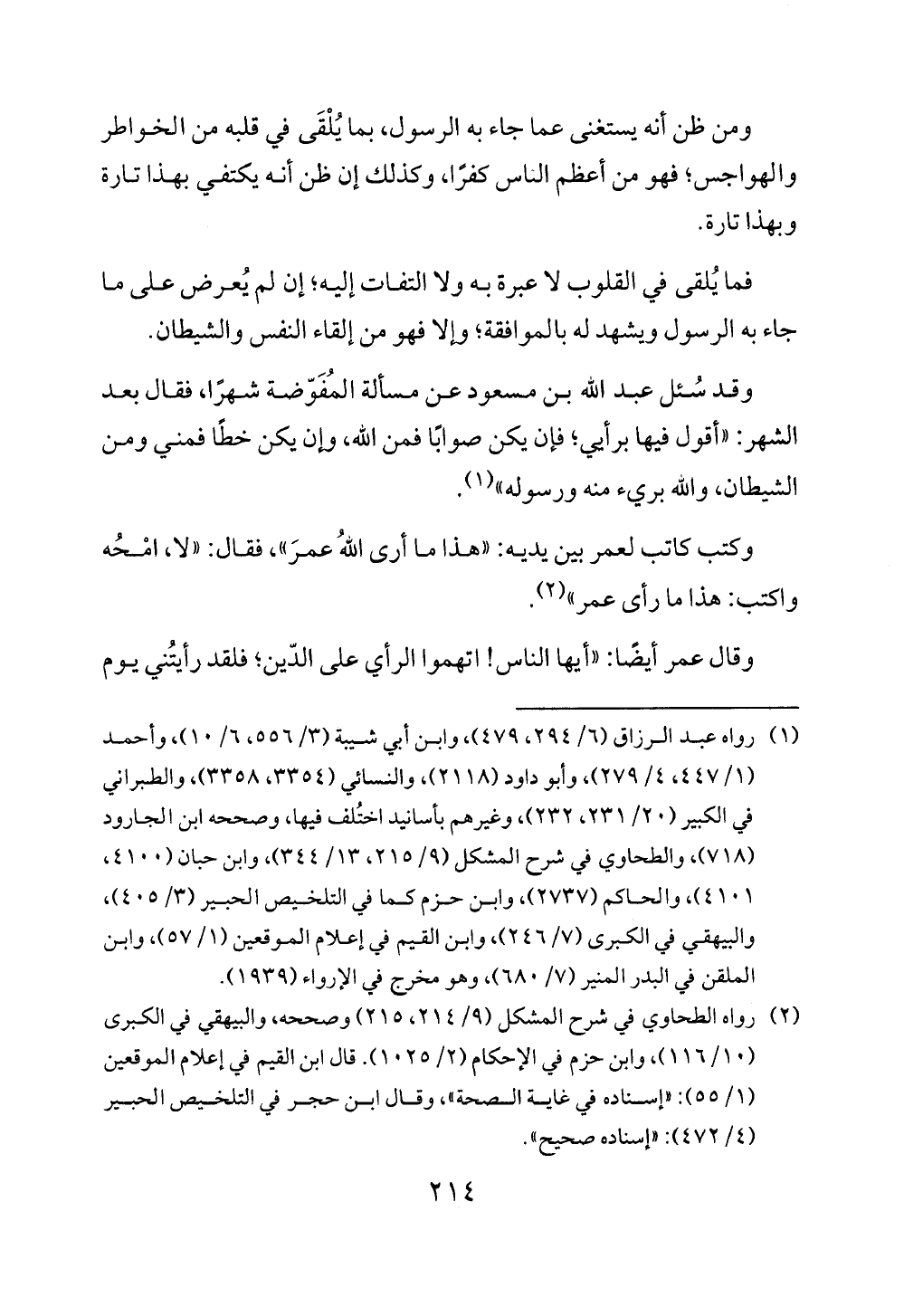 (¬2) رواه الطحاوي في شرح المشكل (9/ 214، 215) وصححه، والبيهقي في الكبرى (15/ 116)، وابن حزم في الإحكام (2/ 1025). قال ابن القيم في إعلام الموقعين (1/ 55): "إسناده في غاية الصحة"، وقال ابن حجر في التلخيص الحبير (4/ 472): "إسناده صحيح".