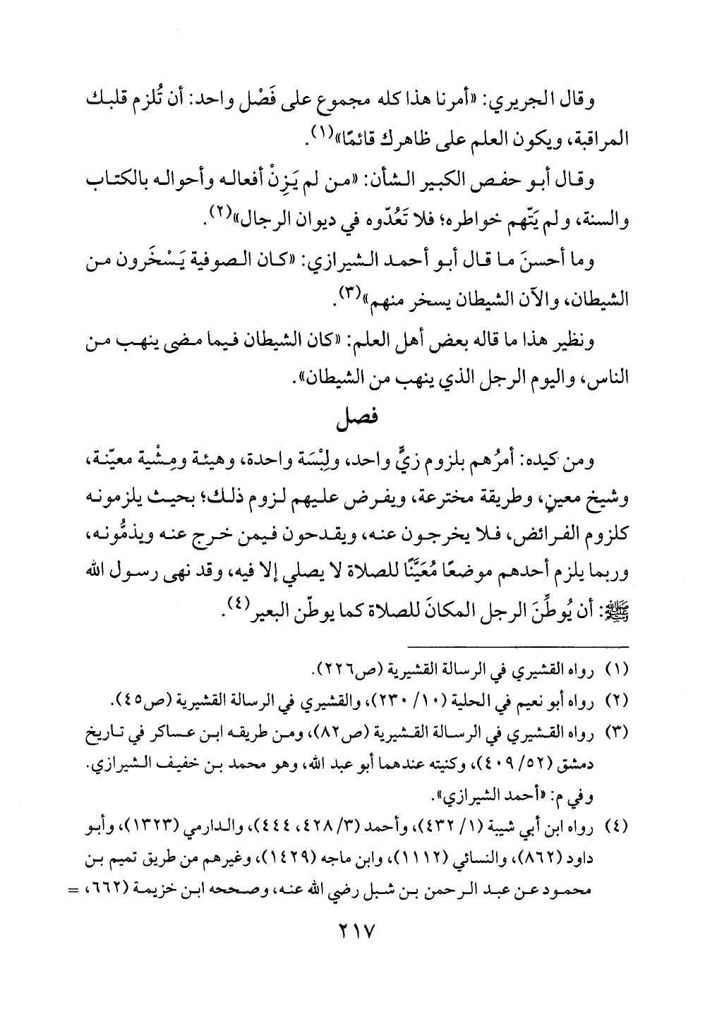 (¬3) رواه القشيري في الرسالة القشيرية (ص 82)، ومن طريقه ابن عساكر في تاريخ دمشق (52/ 409)، وكنيته عندهما أبو عبد الله، وهو محمد بن خفيف الشيرازي. وفي م: "أحمد الشيرازي".
