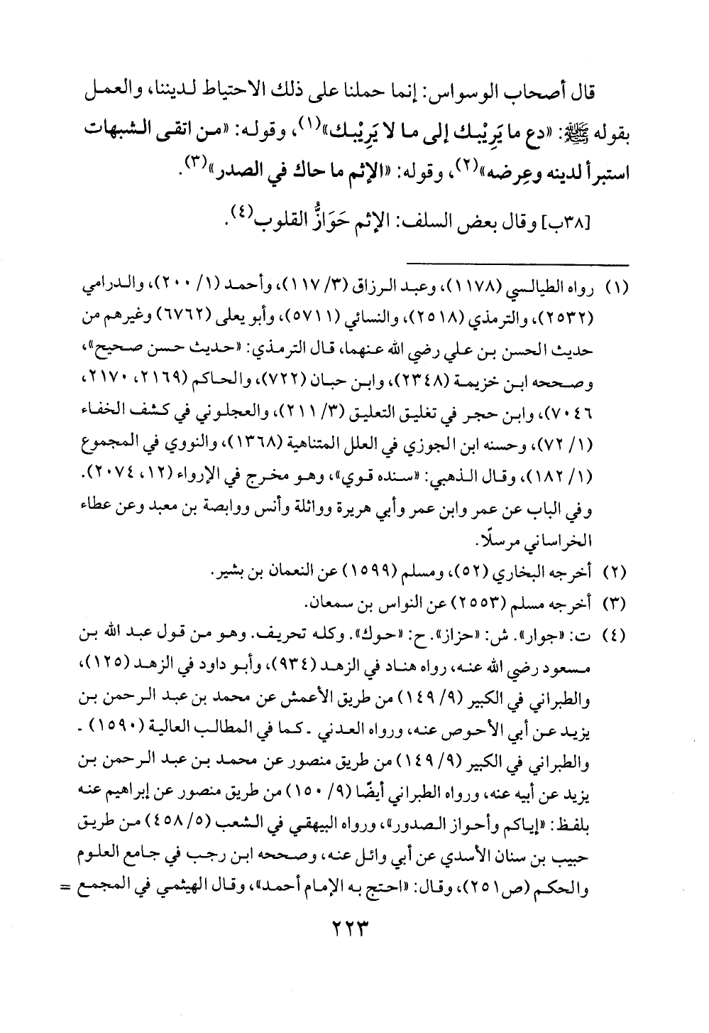 [38 ب] وقال بعض السلف: الإثم حَوَازُّ القلوب (¬4).