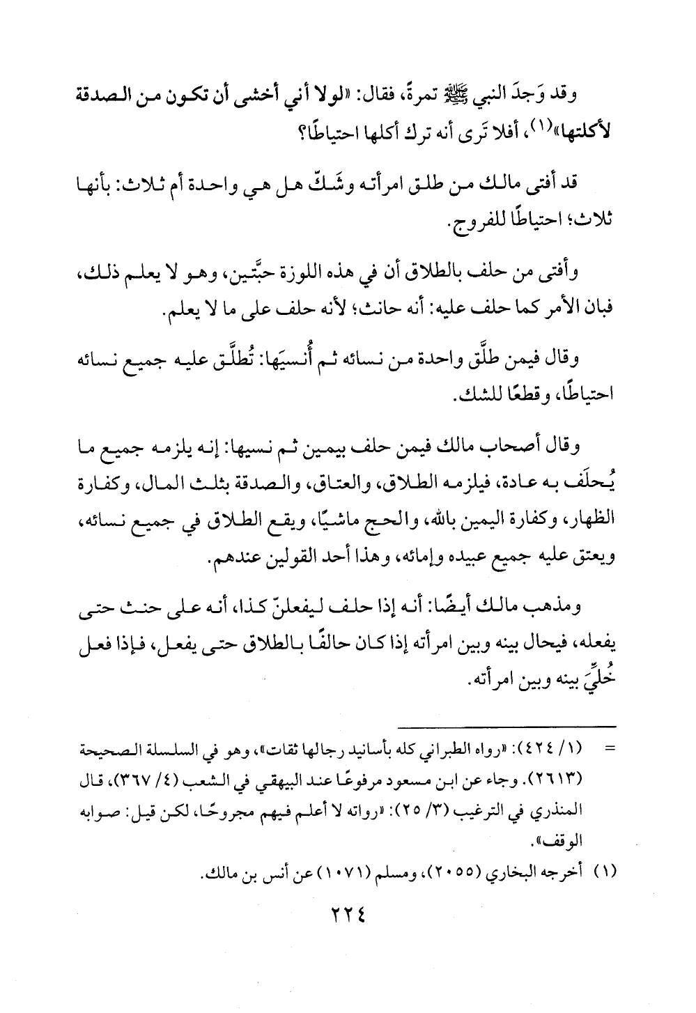 وقد وَجدَ النبي - صلى الله عليه وسلم - تمرةً، فقال: "لولا أني أخشى أن تكون من الصدقة لأكلتها" (¬1)، أفلا تَرى أنه ترك أكلها احتياطًا؟