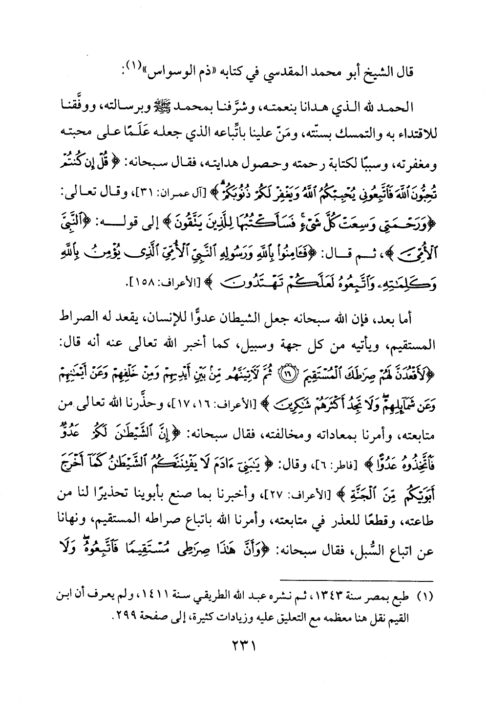 قال الشيخ أبو محمد المقدسي في كتابه "ذم الوسواس" (¬1):