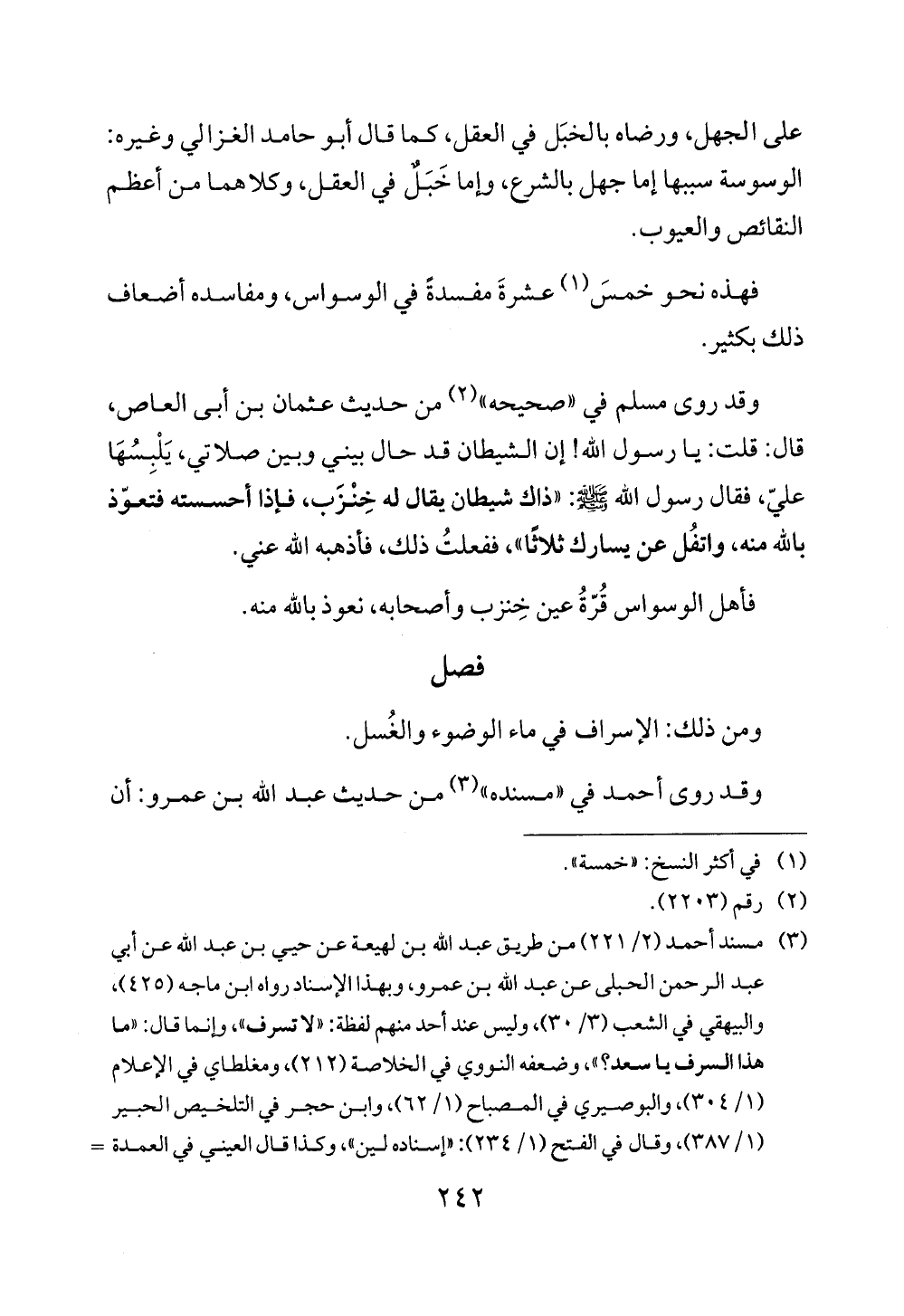 (¬3) مسند أحمد (2/ 221) من طريق عبد الله بن لهيعة عن حيي بن عبد الله عن أبي عبد الرحمن الحبلى عن عبد الله بن عمرو، وبهذا الإسناد رواه ابن ماجه (425)، والبيهقي في الشعب (3/ 30)، وليس عند أحد منهم لفظة: "لا تسرف"، وإنما قال: "ما هذا السرف ياسعد؟ "، وضعفه النووي في الخلاصة (212)، ومغلطاي في الإعلام (1/ 304)، والبوصيري في المصباح (1/ 62)، وابن حجر في التلخيص الحبير (1/ 387)، وقال في الفتح (1/ 234): "إسناده لين"، وكذا قال العيني في العمدة =