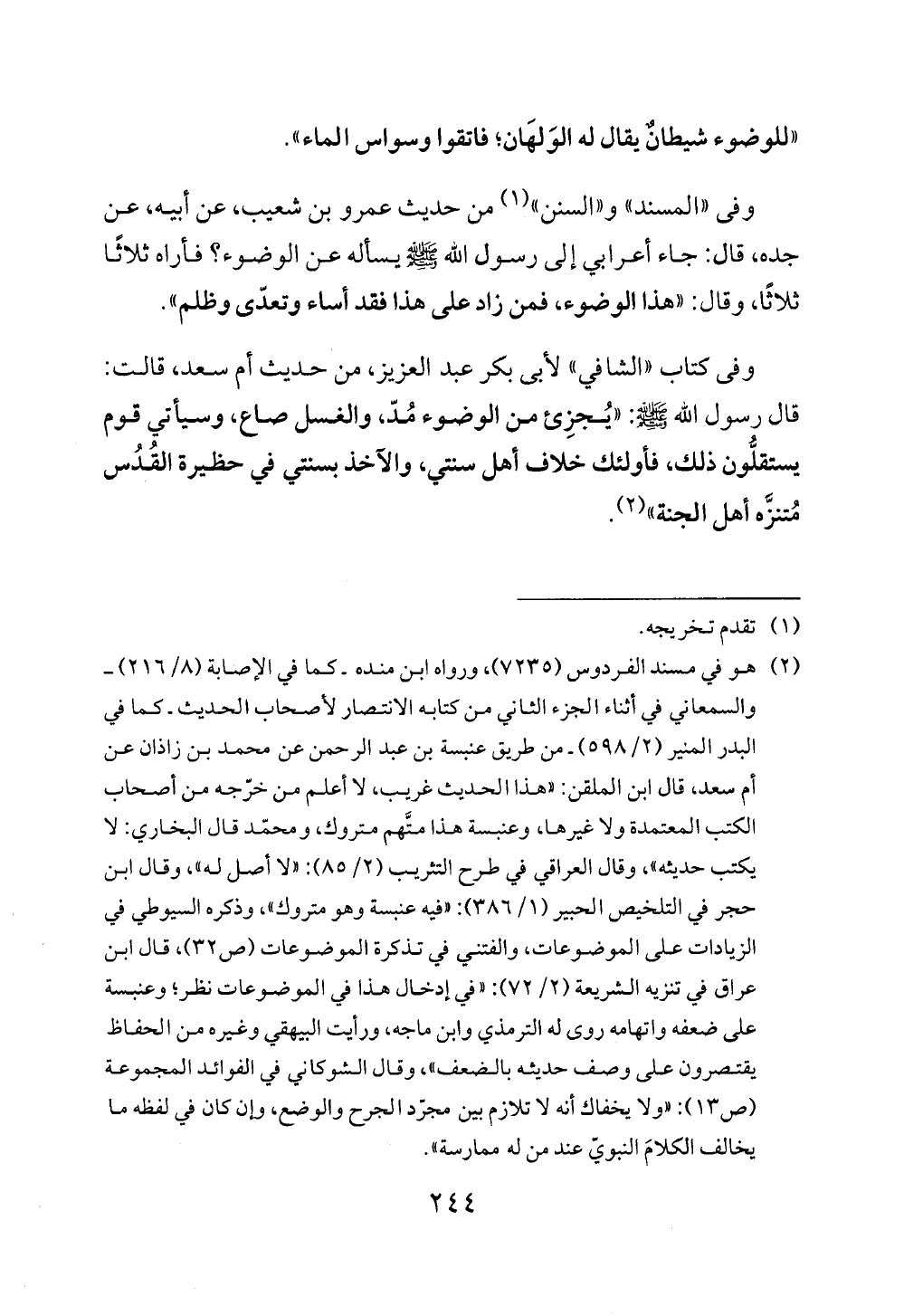 "للوضوء شيطانٌ يقال له الوَلهَان؛ فاتقوا وسواس الماء".