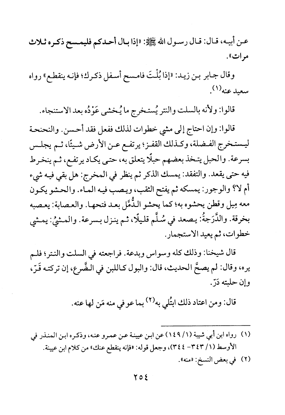 وقال جابر بن زيد: "إذا بُلْتَ فامسح أسفل ذكرك؛ فإنه ينقطع" رواه سعيد عنه (¬1).