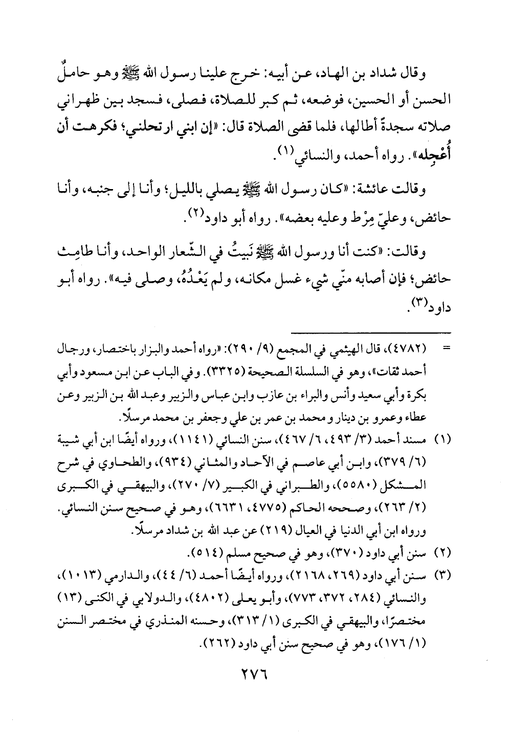 (¬3) سنن أبي داود (269، 2168)، ورواه أيضًا أحمد (6/ 44)، والدارمي (1013)، والنسائي (284، 372، 773)، وأبو يعلى (4802)، والدولابي في الكنى (13) مختصرًا، والبيهقي في الكبرى (1/ 313)، وحسنه المنذري في مختصر السنن (1/ 176)، وهو في صحيح سنن أبي داود (262).