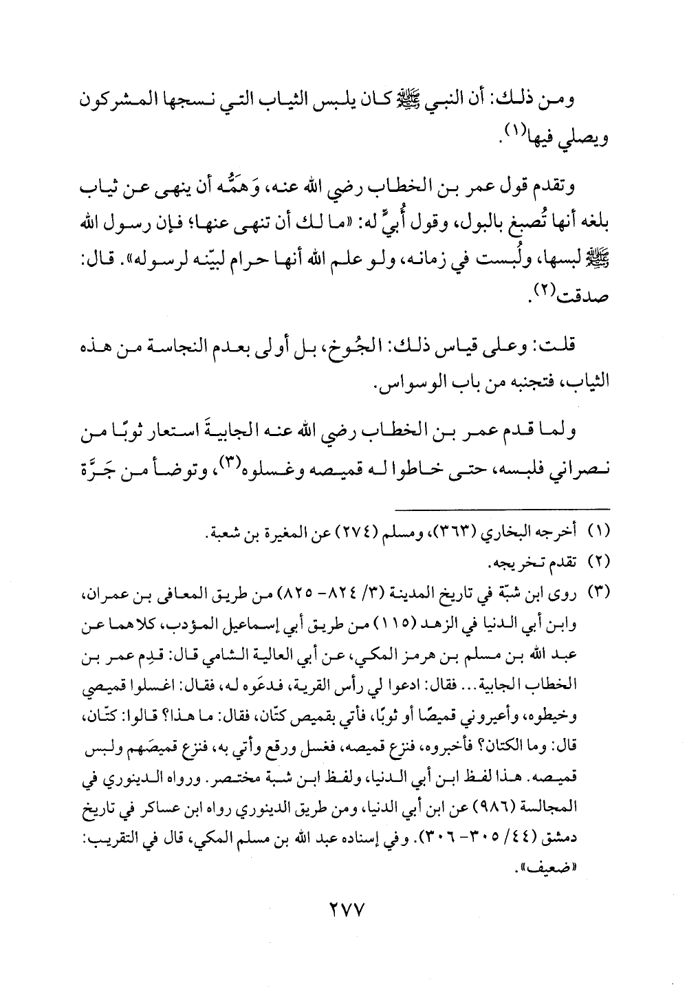 وتقدم قول عمر بن الخطاب رضي الله عنه، وَهَمُّه أن ينهى عن ثياب بلغه أنها تُصبغ بالبول، وقول أُبيٍّ له: "ما لك أن تنهى عنها؛ فإن رسول الله - صلى الله عليه وسلم - لبسها، ولُبست في زمانه، ولو علم الله أنها حرام لبيّنه لرسوله". قال: صدقت (¬2).