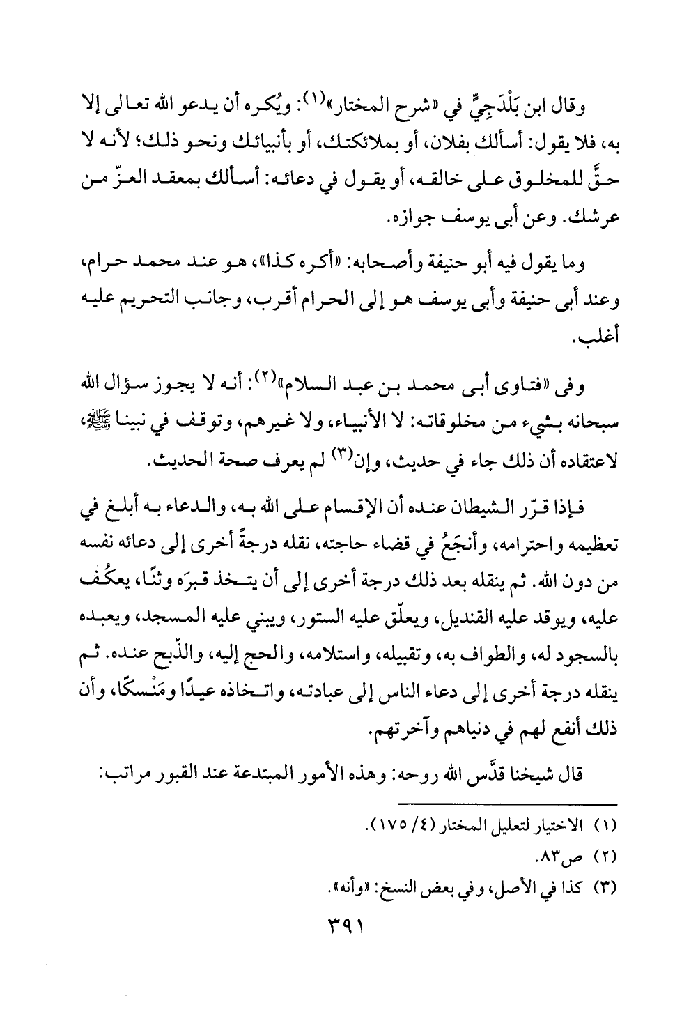 قال شيخنا قدَّس الله روحه: وهذه الأمور المبتدعة عند القبور مراتب: