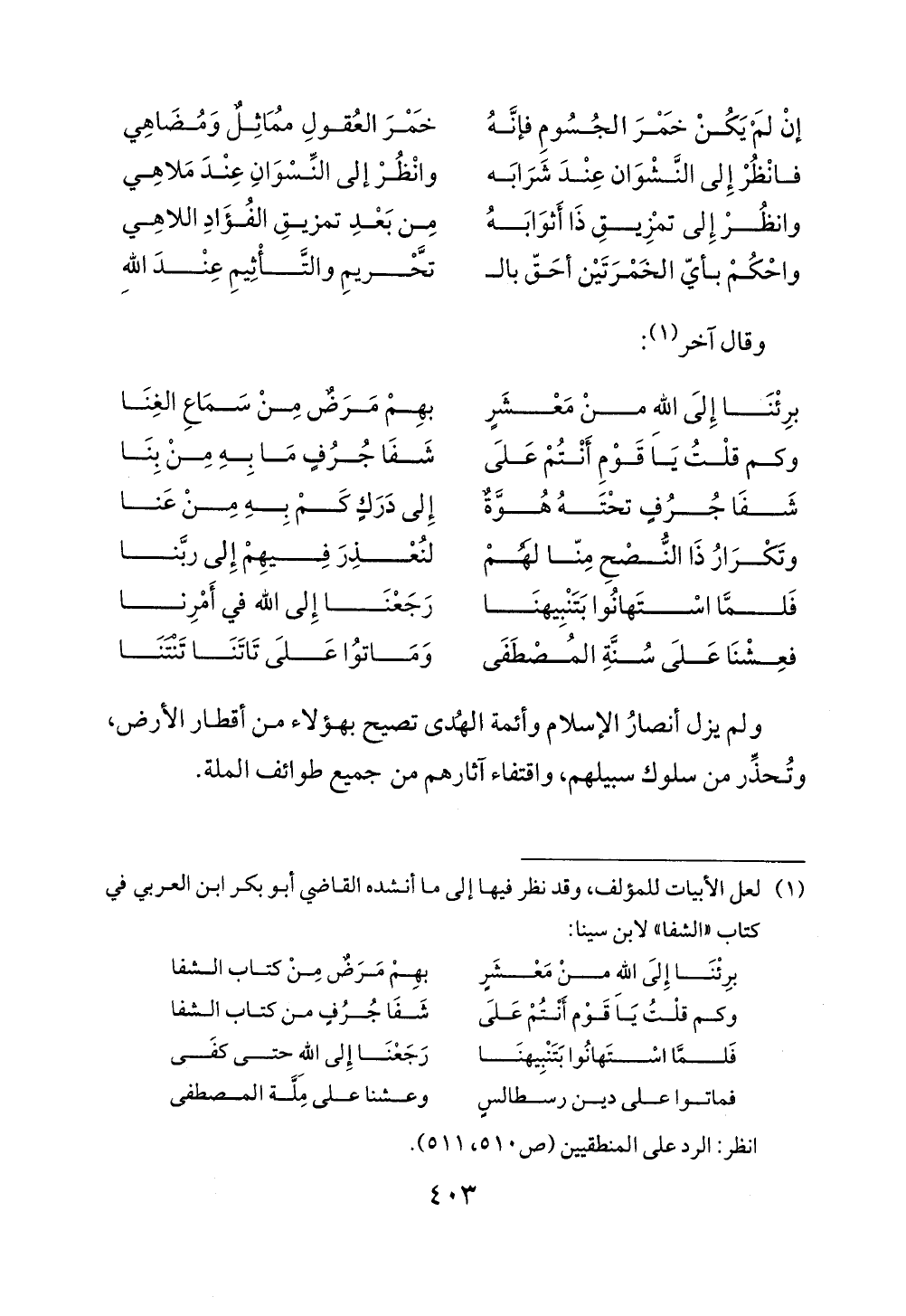 برِئْنَا إِلىَ الله منْ مَعْشَرٍ ... بهِمْ مَرَضٌ مِنْ كتاب الشفا