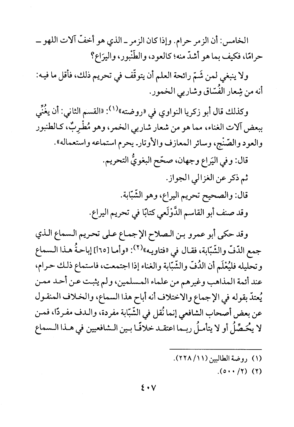 ولا ينبغي لمن شَمّ رائحة العلم أن يتوقّف في تحريم ذلك، فأقل ما فيه: أنه من شِعار الفُسّاق وشاربي الخمور.