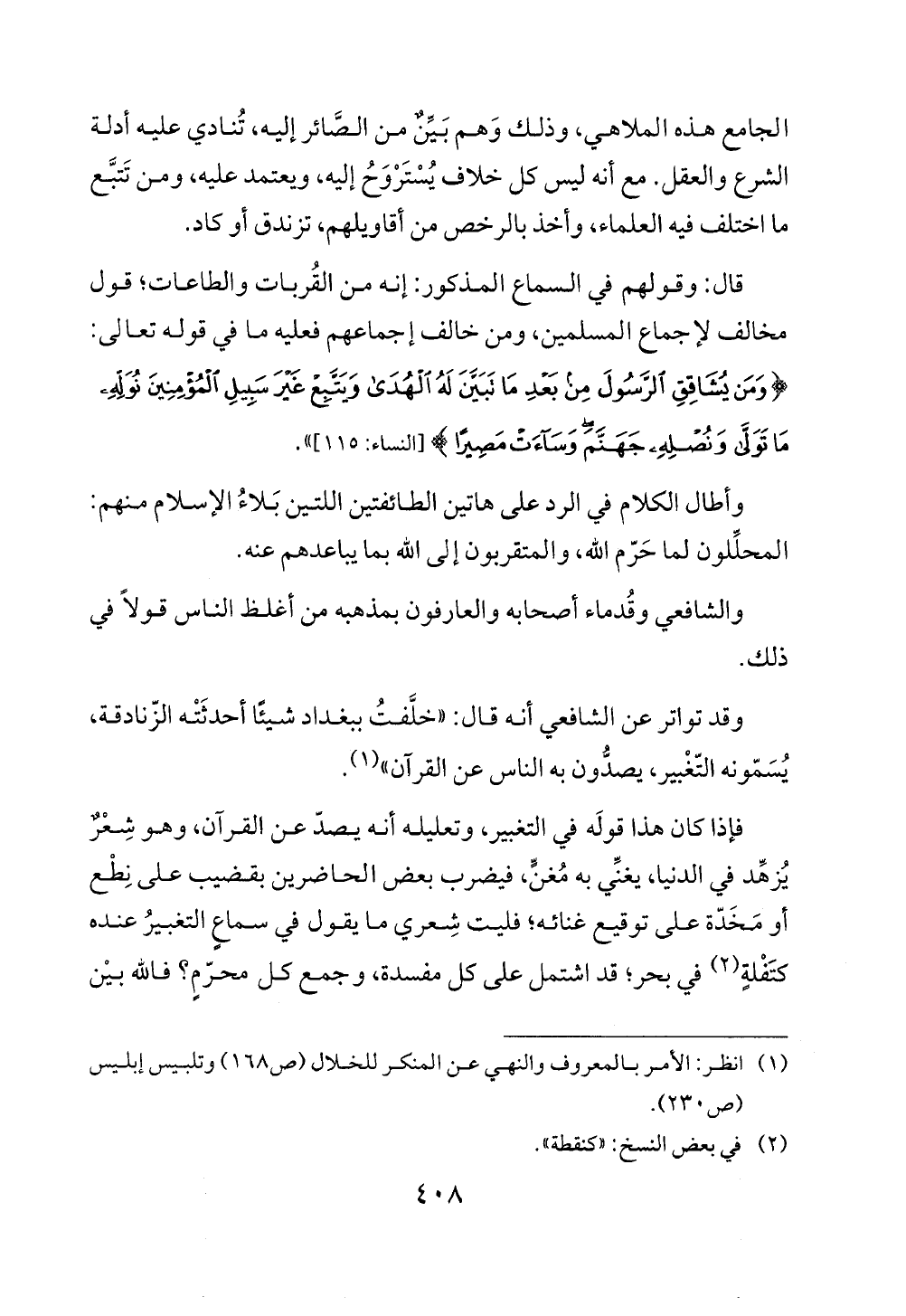 وقد تواتر عن الشافعي أنه قال: "خلَّفتُ ببغداد شيئًا أحدثَتْه الزّنادقة، يُسَمّونه التغْبير، يصدُّون به الناس عن القرآن" (¬1).