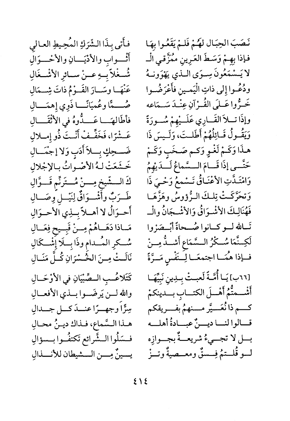قالوا لنا دينٌ عبادةُ أهله ... هذا السَّماع، فذاك دينُ محالِ