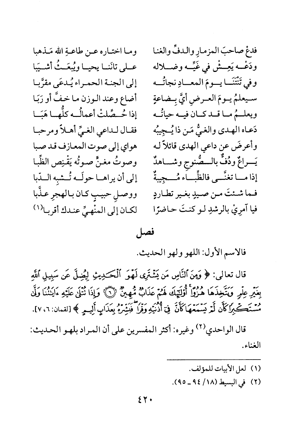 وأعرضَ عن داعي الهدى قائلاً له ... هواي إلى صوت المعازف قد صبا