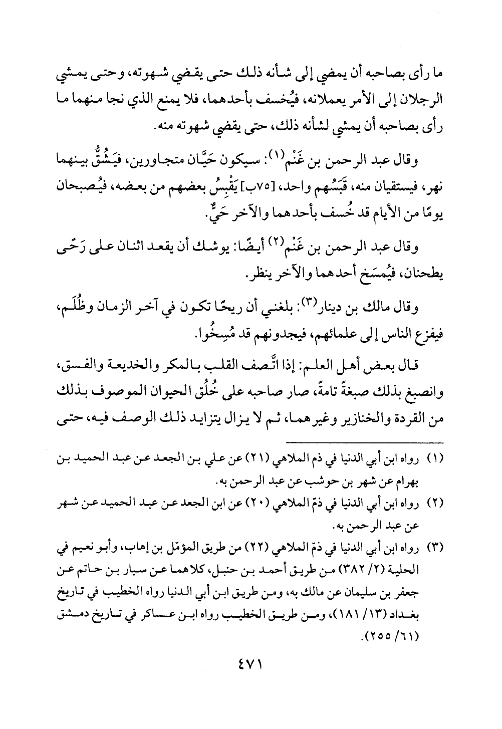 (¬3) رواه ابن أبي الدنيا في ذمّ الملاهي (22) من طريق المؤمّل بن إهاب، وأبو نعيم في الحلية (2/ 382) من طريق أحمد بن حنبل، كلاهما عن سيار بن حاتم عن جعفر بن سليمان عن مالك به، ومن طريق ابن أبي الدنيا رواه الخطيب في تاريخ بغداد (13/ 181)، ومن طريق الخطيب رواه ابن عساكر في تاريخ دمشق (61/ 255).