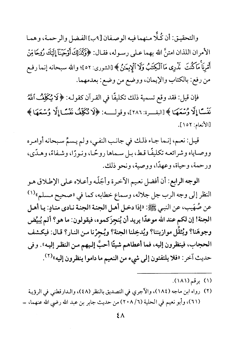 (¬2) رواه ابن ماجه (184)، والآجري في التصديق بالنظر (48)، والدارقطني في الرؤية (61)، وأبو نعيم في الحلية (6/ 208) من حديث جابر بن عبد الله رضي الله عنهما، =