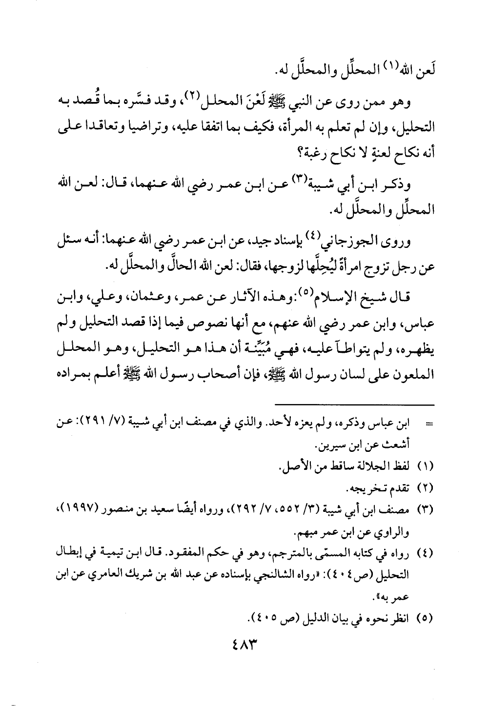 (¬4) رواه في كتابه المسمَّى بالمترجم، وهو في حكم المفقود. قال ابن تيمية في إبطال التحليل (ص 404): "رواه الشالنجي بإسناده عن عبد الله بن شريك العامري عن ابن عمر به".