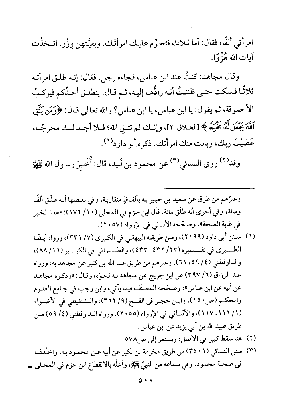 = وغيرُهم من طرق عن سعيد بن جبير به بألفاظِ متقاربة، وفي بعضها أنه طلّق ألفًا ومائة، وفي أخرى أنه طلّق مائة، قال ابن حزم في المحلى (10/ 172): "هذا الخبر في غاية الصحة"، وصحّحه الألباني في الإرواء (2557).
