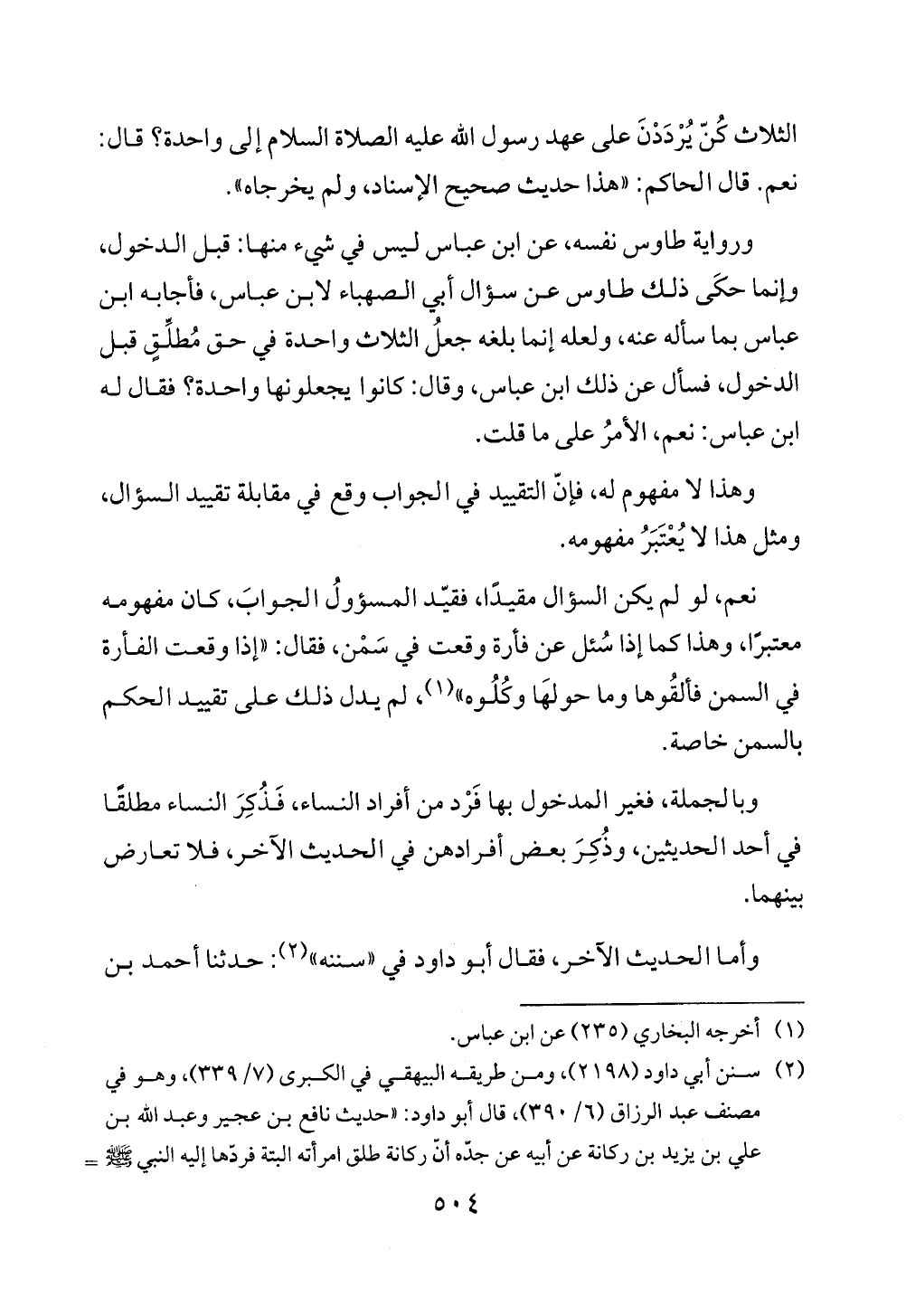 ورواية طاوس نفسه، عن ابن عباس ليس في شيء منها: قبل الدخول، وإنما حكَى ذلك طاوس عن سؤال أبي الصهباء لابن عباس، فأجابه ابن عباس بما سأله عنه، ولعله إنما بلغه جعلُ الثلاث واحدة في حق مُطلِّقٍ قبل الدخول، فسأل عن ذلك ابن عباس، وقال: كانوا يجعلونها واحدة؟ فقال له ابن عباس: نعم، الأمرُ على ما قلت.