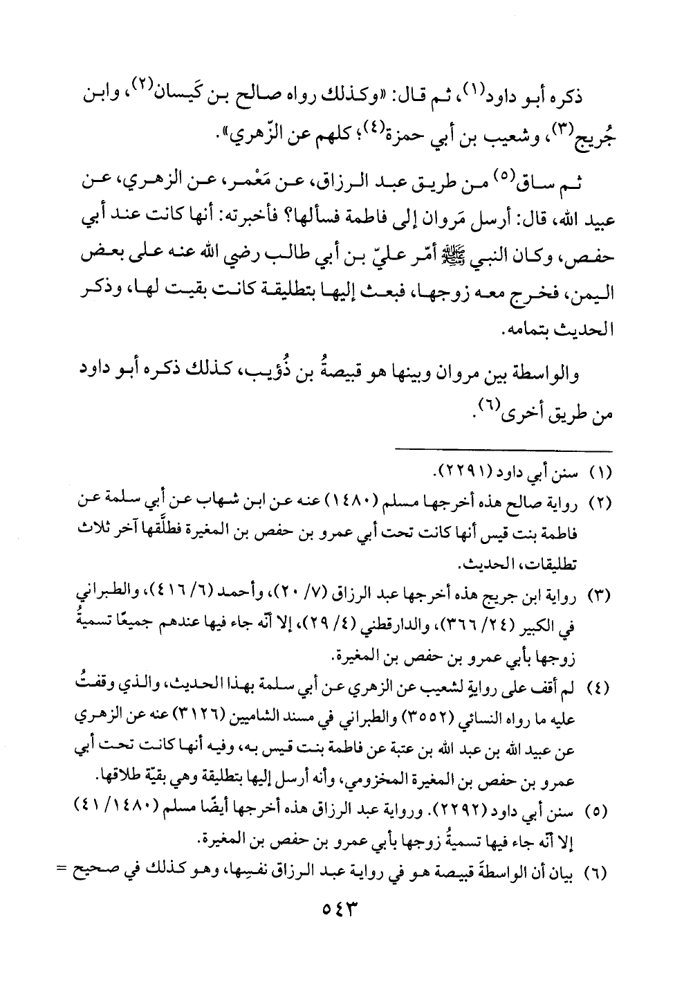 (¬5) سنن أبي داود (2292). ورواية عبد الرزاق هذه أخرجها أيضًا مسلم (1480/ 41) إلا أنه جاء فيها تسميةُ زوجها بأبي عمرو بن حفص بن المغيرة.