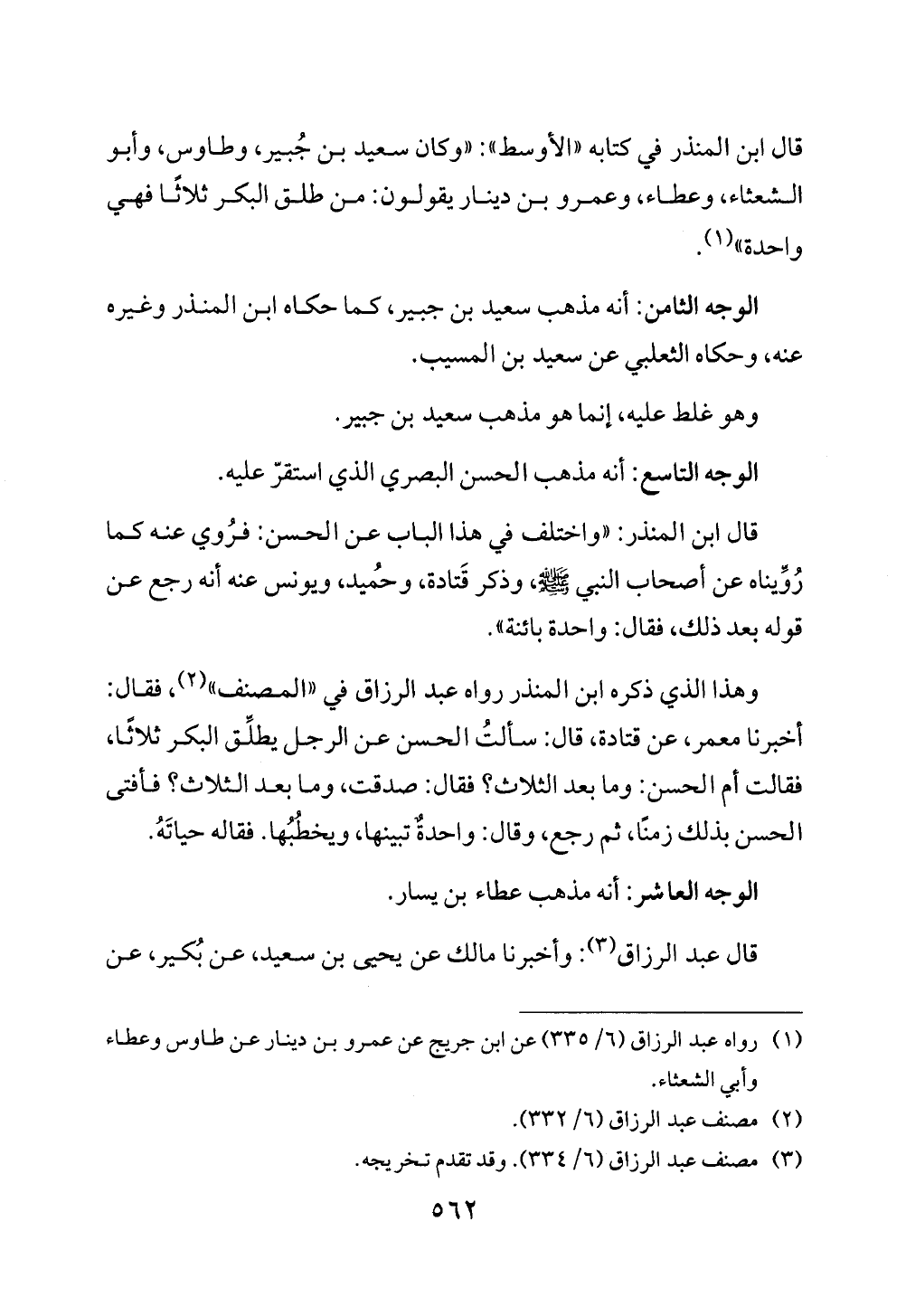 قال ابن المنذر في كتابه "الأوسط": "وكان سعيد بن جُبير، وطاوس، وأبو الشعثاء، وعطاء، وعمرو بن دينار يقولون: من طلق البكر ثلاثًا فهي واحدة" (¬1).