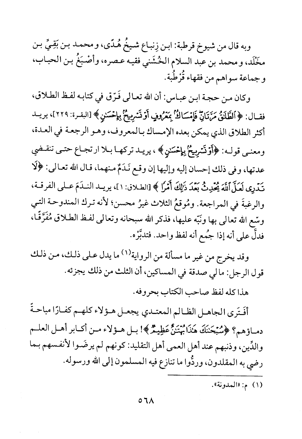 أفَتَرى الجاهل الظالم المعتدي يجعل هؤلاء كلهم كفارًا مباحةً دماؤهم؛ {سُبْحَانَكَ هَذَا بُهْتَانٌ عَظِيمٌ}! بل هؤلاء من أكابر أهل العلم والدِّين، وذنبهم عند أهل العمى أهل التقليد: كونهم لم يرضَوا لأنفسهم بما رضي به المقلدون، وردُّوا ما تنازع فيه المسلمون إلى الله ورسوله.