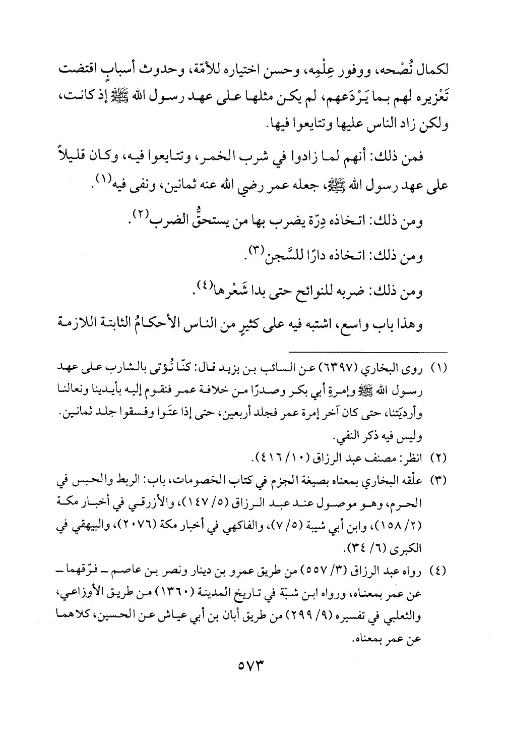(¬4) رواه عبد الرزاق (3/ 557) من طريق عمرو بن دينار ونصر بن عاصم -فرّقهما- عن عمر بمعناه، ورواه ابن شبّة في تاريخ المدينة (1360) من طريق الأوزاعي، والثعلبي في تفسيره (9/ 299) من طريق أبان بن أبي عياش عن الحسين، كلاهما عن عمر بمعناه.