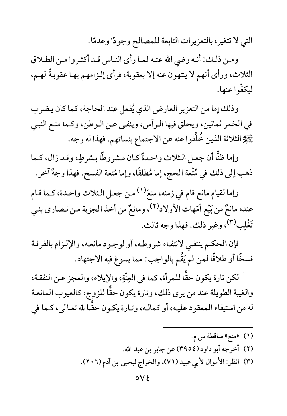 وإما لقيام مانع قام في زمنه، منعَ (¬1) من جعل الثلاث واحدة، كما قام عنده مانع من بَيْع أمّهات الأولاد (¬2)، ومانعٌ من أخذ الجزية من نصارى بني تَغْلِب (¬3)، وغير ذلك. فهذا وجه ثالث.