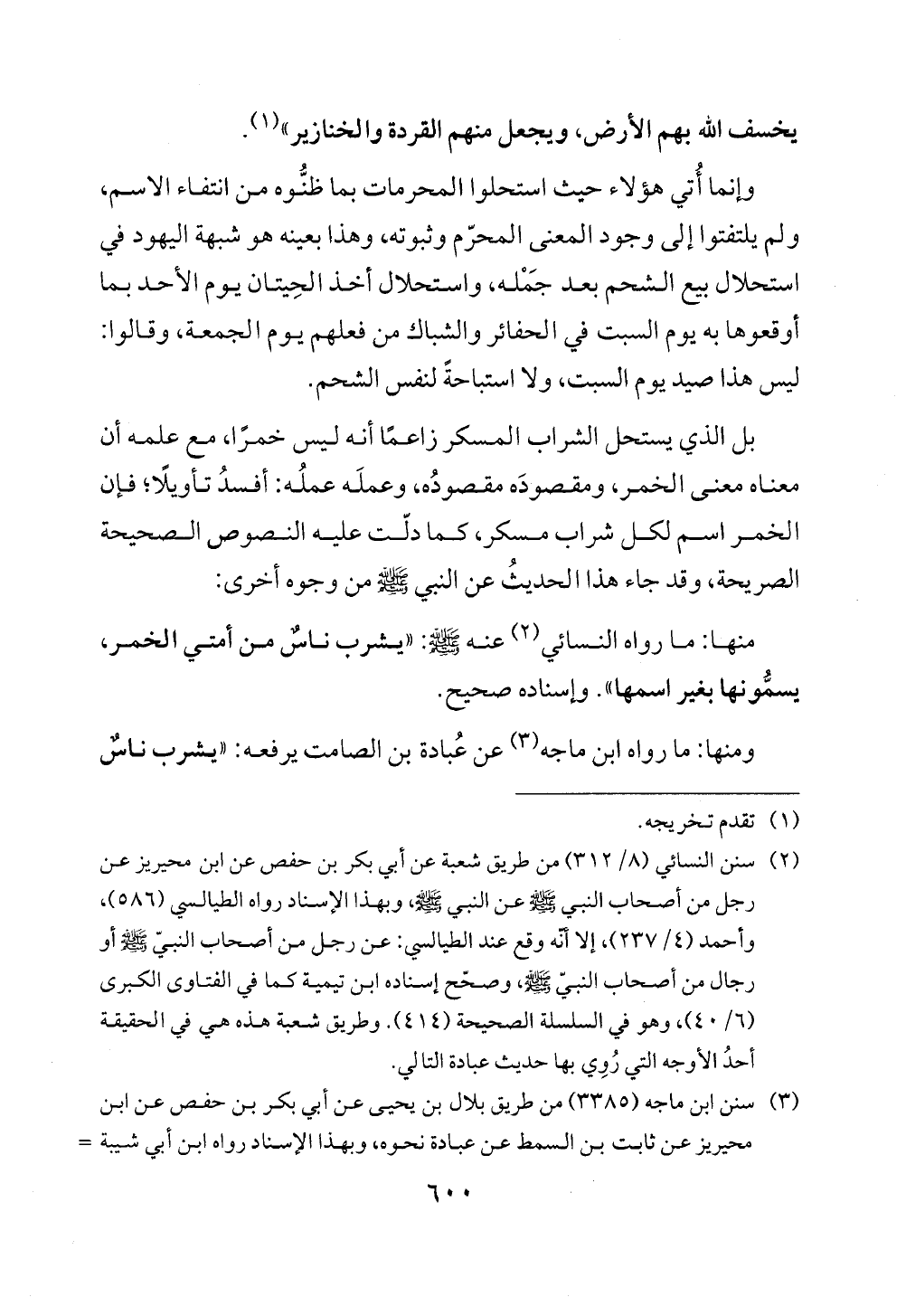 منها: ما رواه النسائي (¬2) عنه - صلى الله عليه وسلم -: "يشرب ناسٌ من أمتي الخمر، يسمُّونها بغير اسمها". وإسناده صحيح.