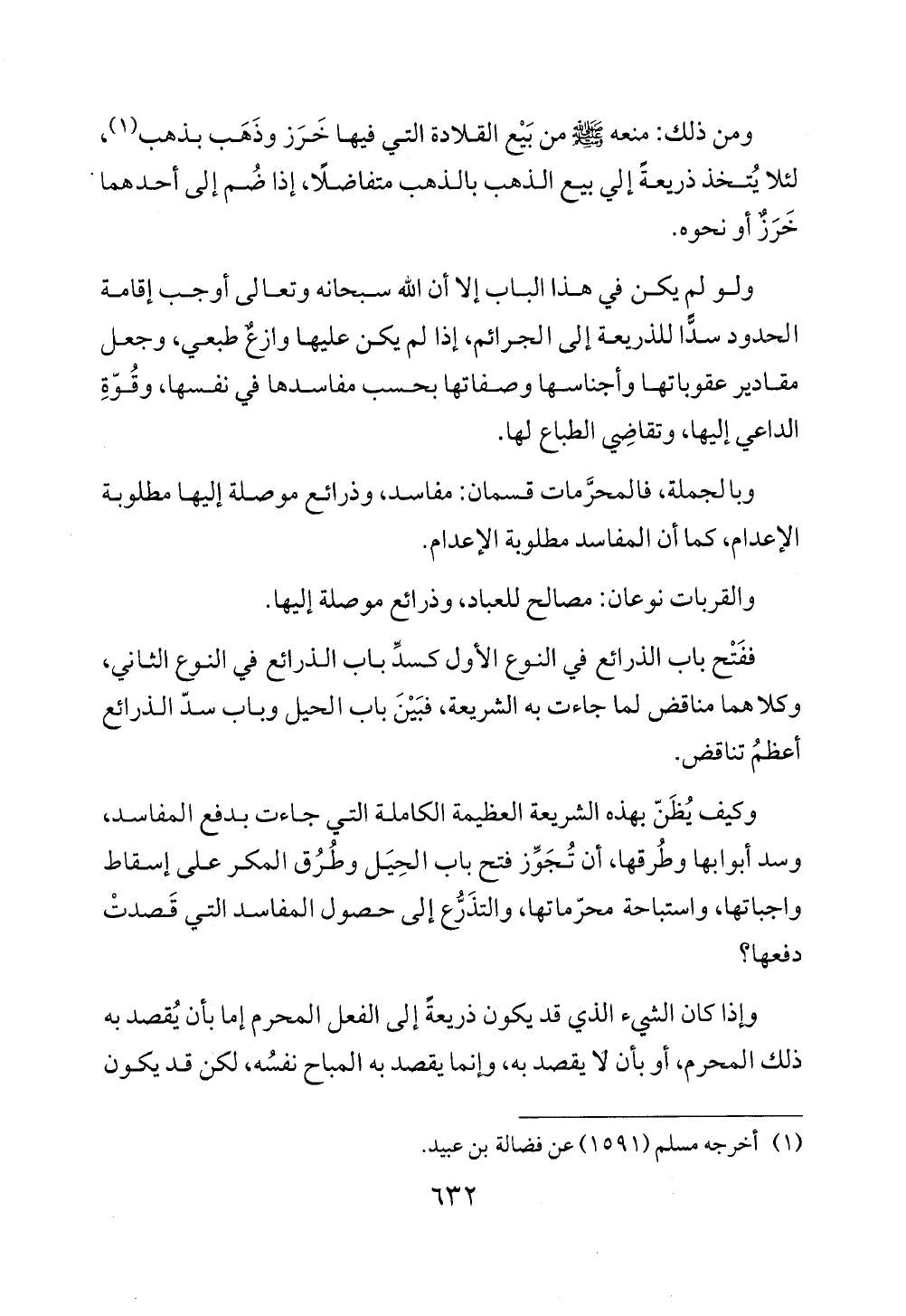 وبالجملة، فالمحرَّمات قسمان: مفاسد، وذرائع موصلة إليها مطلوبة الإعدام، كما أن المفاسد مطلوبة الإعدام.