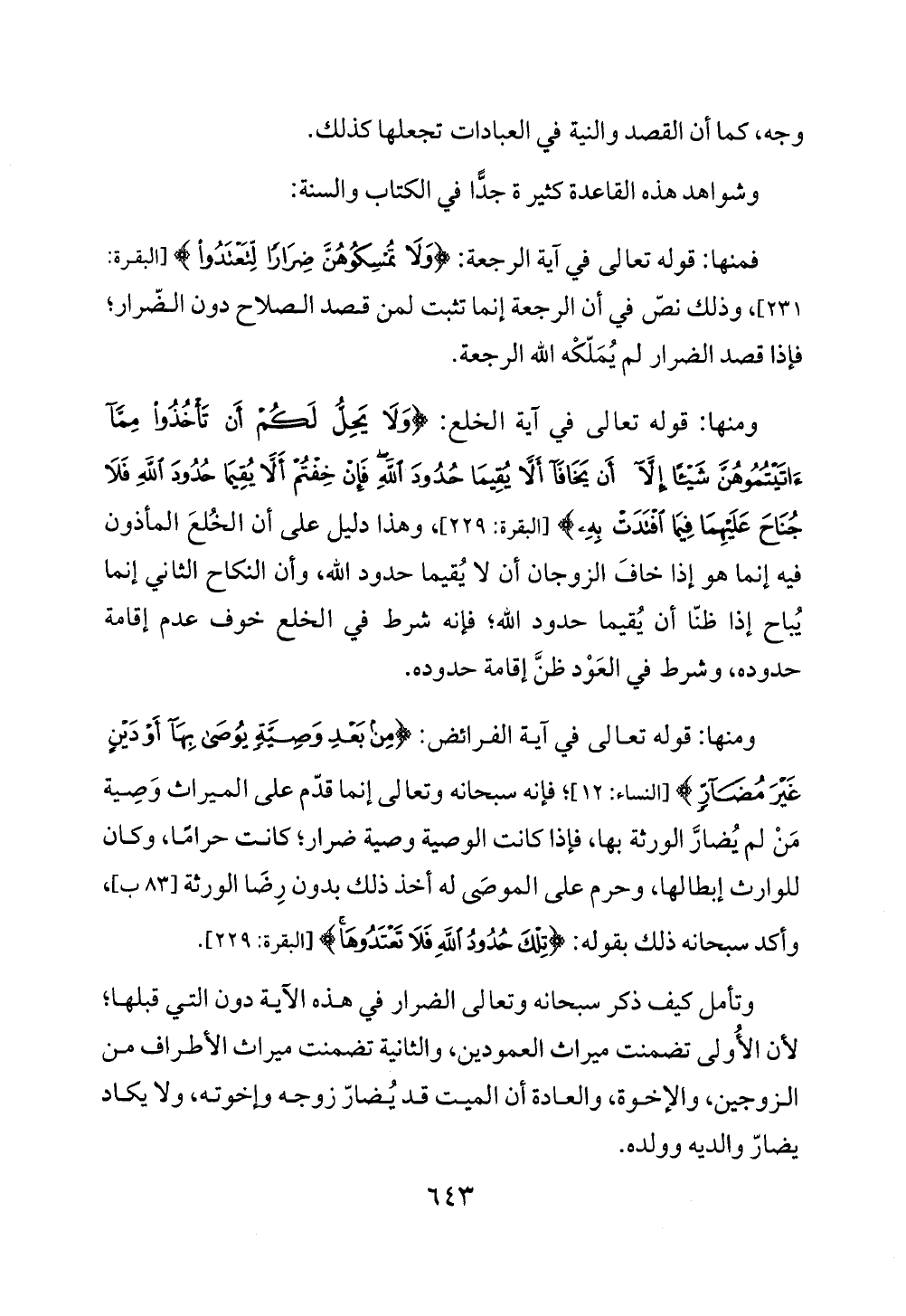 فمنها: قوله تعالى في آية الرجعة: {وَلَا تُمْسِكُوهُنَّ ضِرَارًا لِتَعْتَدُوا} [البقرة: 231]، وذلك نصّ في أن الرجعة إنما تثبت لمن قصد الصلاح دون الضّرار؛ فإذا قصد الضرار لم يُمَلّكْه الله الرجعة.