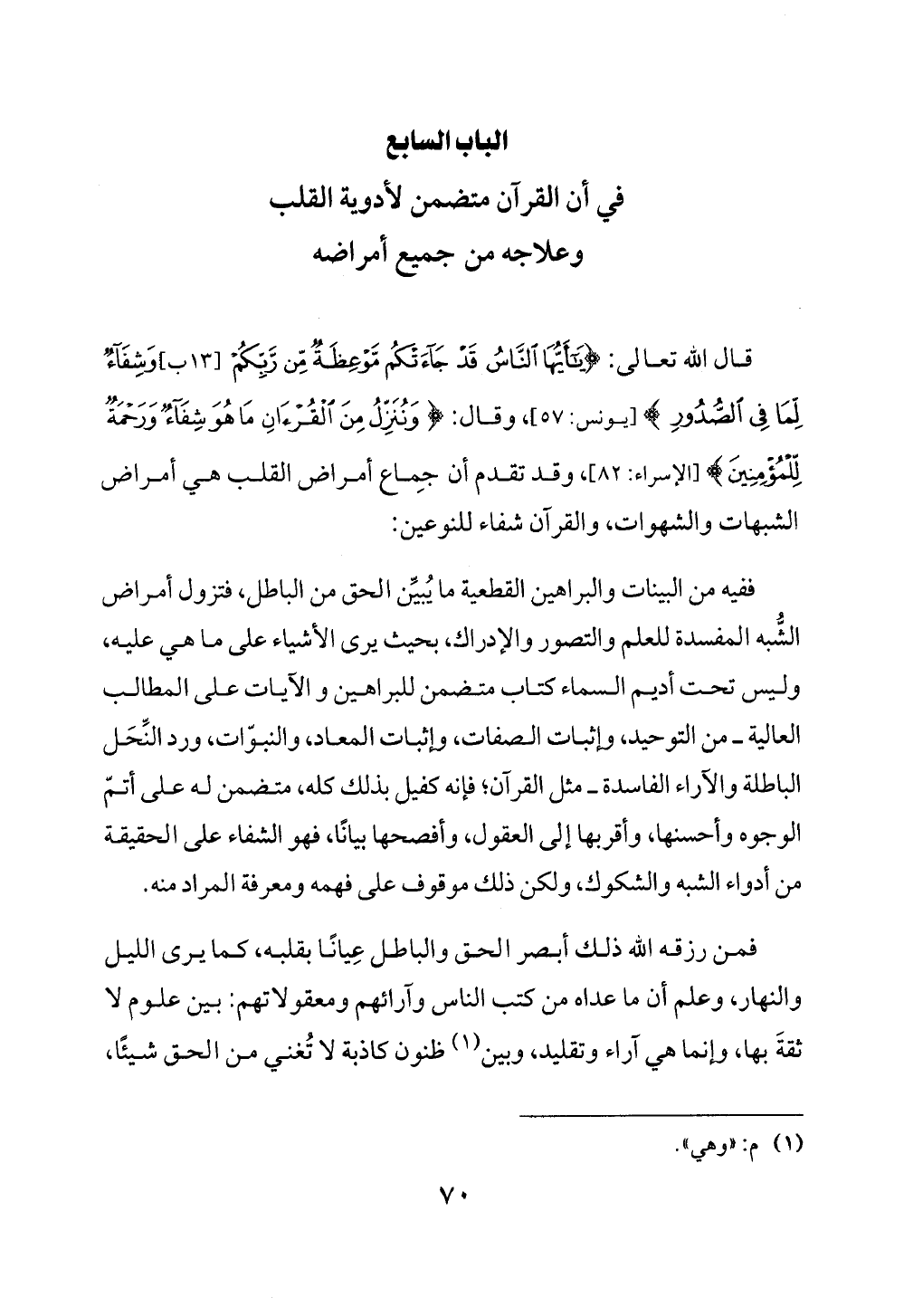 في أن القرآن متضمن لأدوية القلب وعلاجه من جميع أمراضه