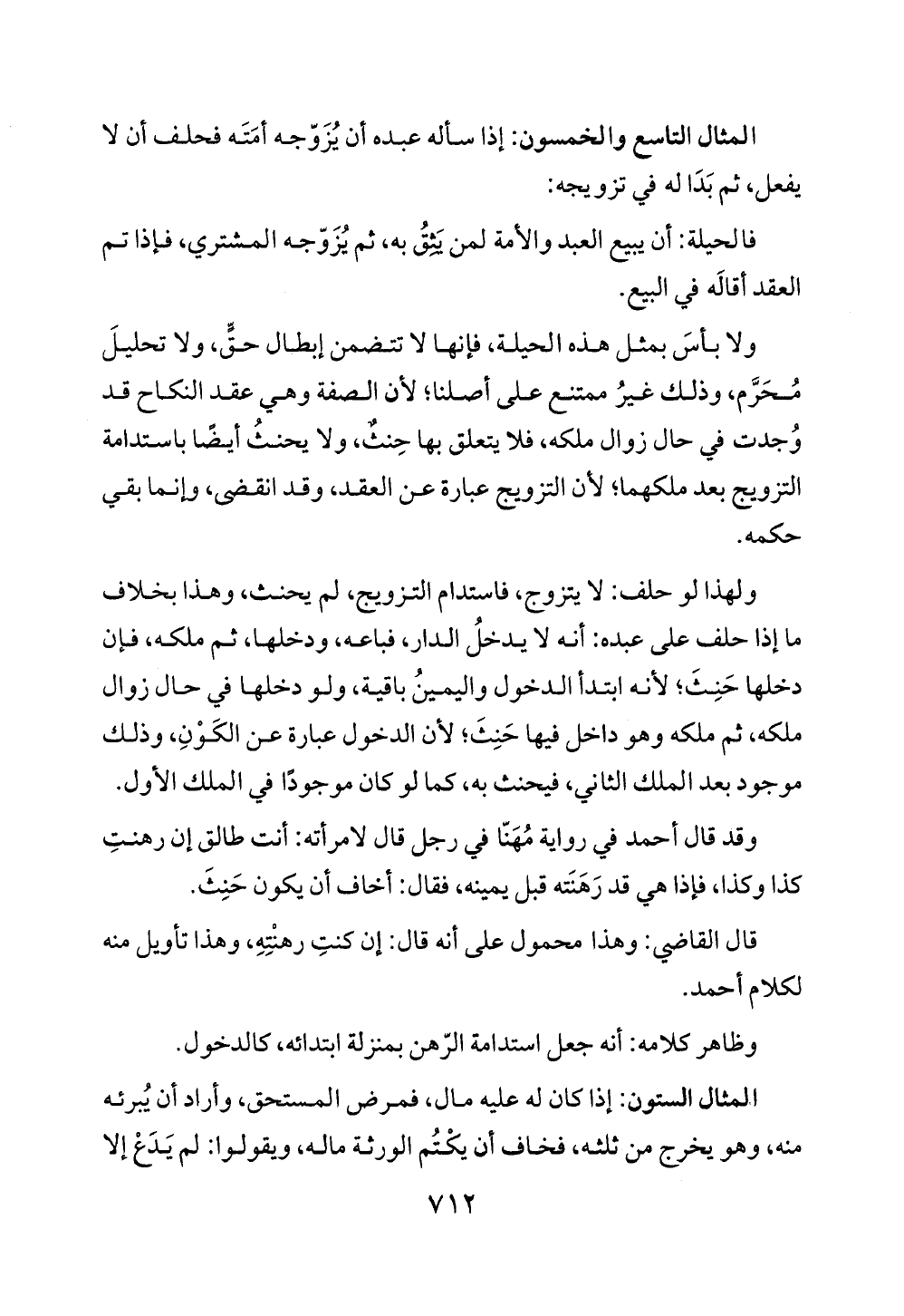 ولا بأسَ بمثل هذه الحيلة، فإنها لا تتضمن إبطال حقٍّ، ولا تحليلَ مُحَرَّم، وذلك غيرُ ممتنع على أصلنا؛ لأن الصفة وهي عقد النكاح قد وُجدت في حال زوال ملكه، فلا يتعلق بها حِنثٌ، ولا يحنثُ أيضًا باستدامة التزويج بعد ملكهما؛ لأن التزويج عبارة عن العقد، وقد انقضى، وإنما بقي حكمه.