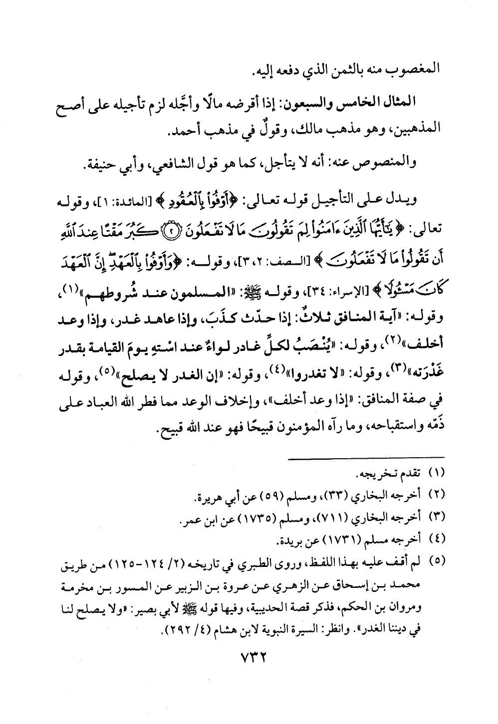 ويدل على التأجيل قوله تعالى: {أَوْفُوا بِالْعُقُودِ} [المائدة: 1]، وقوله تعالى: {يَاأَيُّهَا الَّذِينَ آمَنُوا لِمَ تَقُولُونَ مَا لَا تَفْعَلُونَ (2) كَبُرَ مَقْتًا عِنْدَ اللَّهِ أَنْ تَقُولُوا مَا لَا تَفْعَلُونَ} [الصف: 2، 3]، وقوله: {وَأَوْفُوا بِالْعَهْدِ إِنَّ الْعَهْدَ كَانَ مَسْئُولًا} [الإسراء: 34]، وقوله - صلى الله عليه وسلم -: "المسلمون عند شُروطهم" (¬1)، وقوله: "آية المنافق ثلاثٌ: إذا حدّث كذَبَ، وإذا عاهد غدر، وإذا وعد أخلف" (¬2)، وقوله: "يُنْصَبُ لكلِّ غادر لوا" عند اسْتهِ يومَ القيامة بقدر غَدْرَته" (¬3)، وقوله: "لا تغدروا" (¬4)، وقوله: "إن الغدر لا يصلح" (¬5)، وقوله في صفة المنافق: "إذا وعد أخلف"، وإخلاف الوعد مما فطر الله العباد على ذَمّه واستقباحه، وما رآه المؤمنون قبيحًا فهو عند الله قبيح.