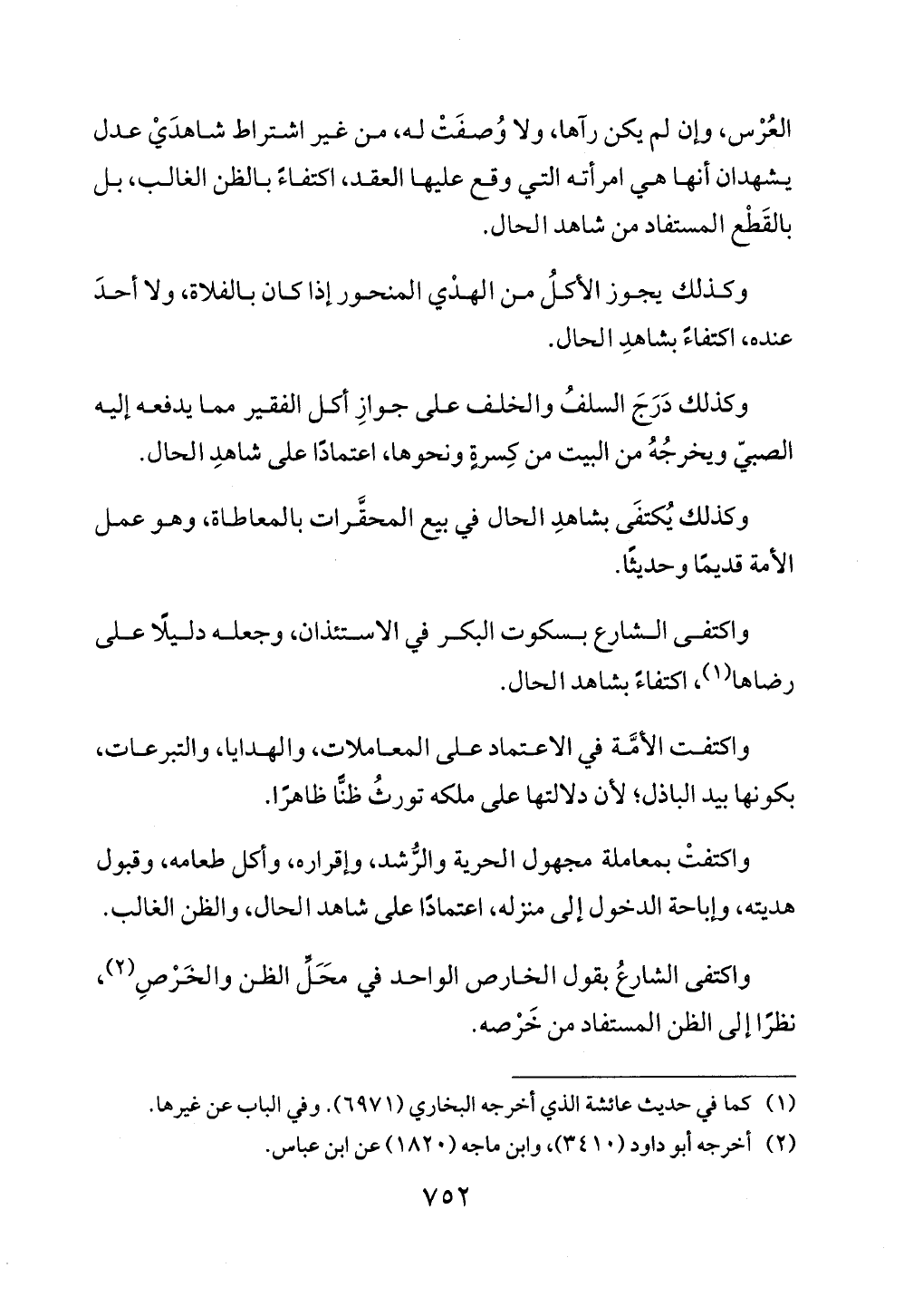 واكتفتْ بمعاملة مجهول الحرية والرُّشد، وإقراره، وأكل طعامه، وقبول هديته، وإباحة الدخول إلى منزله، اعتمادًا على شاهد الحال، والظن الغالب.