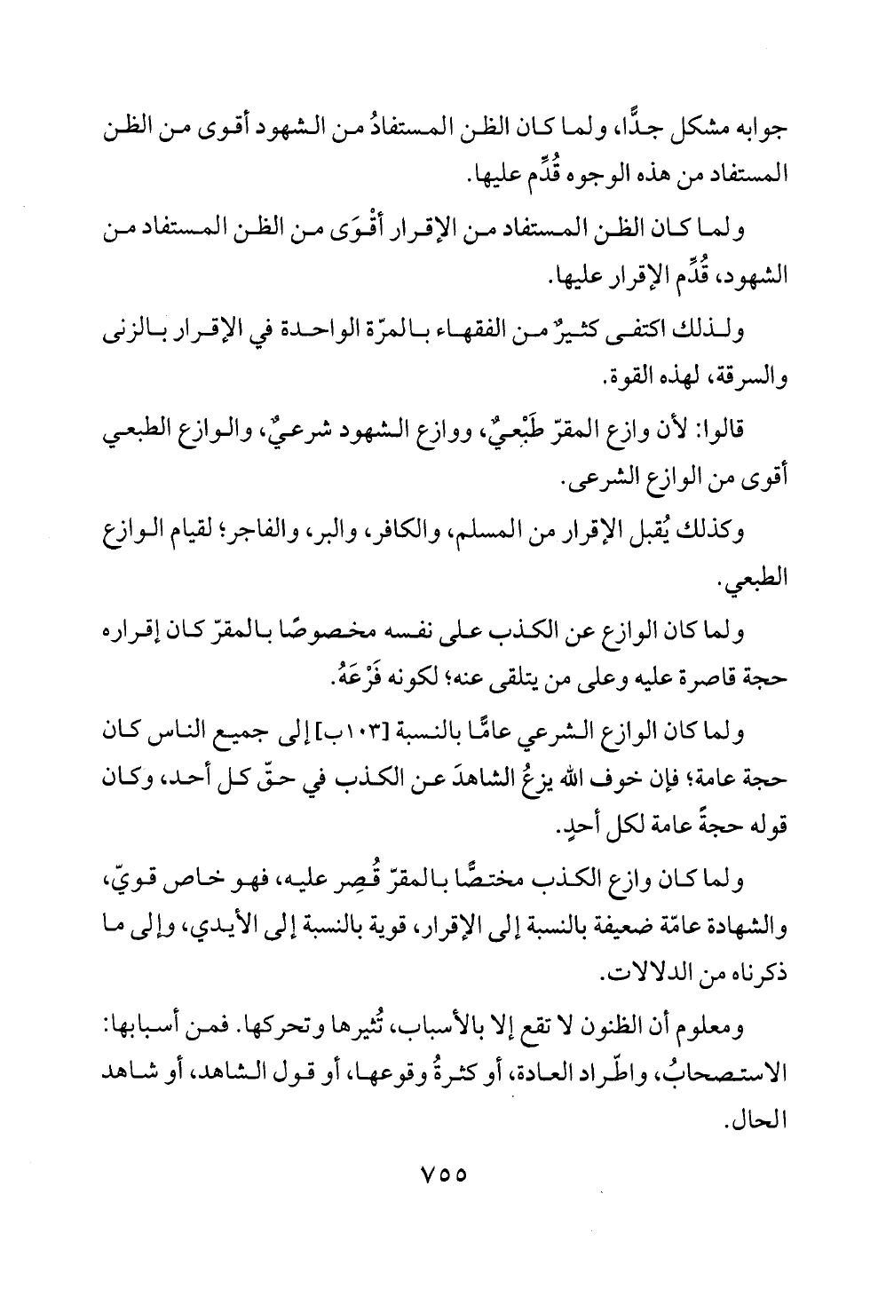 ولما كان الظن المستفاد من الإقرار أقْوَى من الظن المستفاد من الشهود، قُدِّم الإقرار عليها.