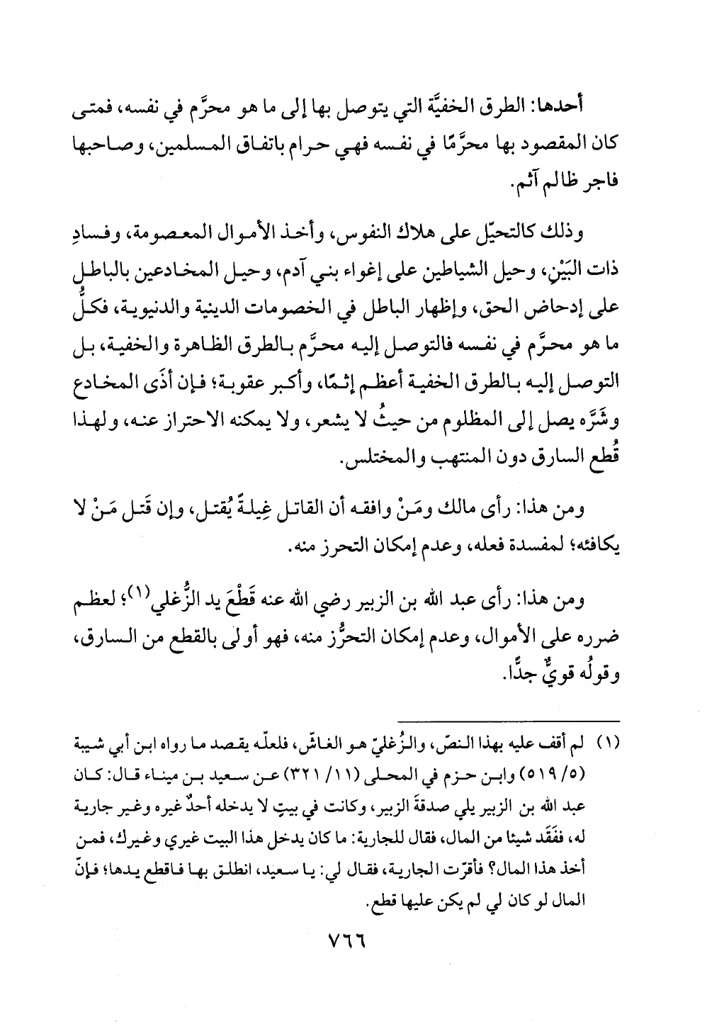 (¬1) لم أقف عليه بهذا النصّ، والزُغليّ هو الغاشّ، فلعلّه يقصد ما رواه ابن أبي شيبة (5/ 519) وابن حزم في المحلى (11/ 321) عن سعيد بن ميناء قال: كان عبد الله بن الزبير يلي صدقةَ الزبير، وكانت في بيتٍ لا يدخله أحدٌ غيره وغير جارية له، ففَقَد شيئًا من المال، فقال للجارية: ما كان يدخل هذا البيت غيري وغيرك، فمن أخذ هذا المال؟ فأقرّت الجارية، فقال لي: يا سعيد، انطلق بها فاقطع يدها؛ فإنّ المال لو كان لي لم يكن عليها قطع.