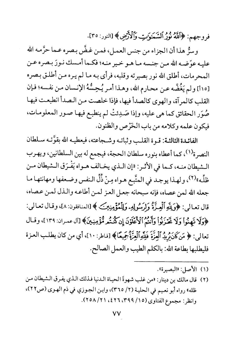 (¬2) قال مالك بن دينار: "من غلب شهوةَ الحياة الدنيا فذلك الذي يفرق الشيطان من ظله" رواه أبو نعيم في الحلية (2/ 365)، وابن الجوزي في ذم الهوى (ص 22)، وانظر: مجموع الفتاوى (15/ 399، 426، 21/ 258).