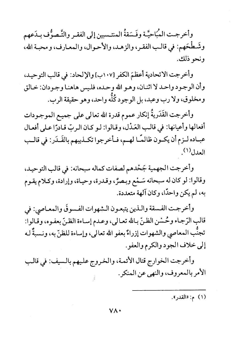 وأخرجت القَدَريةُ إنكار عموم قدرة الله تعالى على جميع الموجودات أفعالها وأعيانها: في قالب العَدْل، وقالوا: لو كان الربّ قادرَا على أفعال عباده لزم أن يكون ظالمَالهم، فأخرجوا تكذيبهم بالقَدَر: في قالب العدل (¬1).