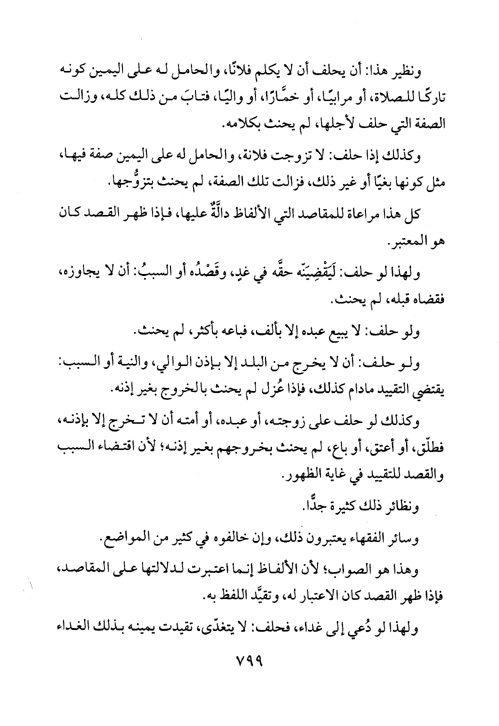 وهذا هو الصواب؛ لأن الألفاظ إنما اعتبرت لدلالتها على المقاصد، فإذا ظهر القصد كان الاعتبار له، وتقيَّد اللفظ به.