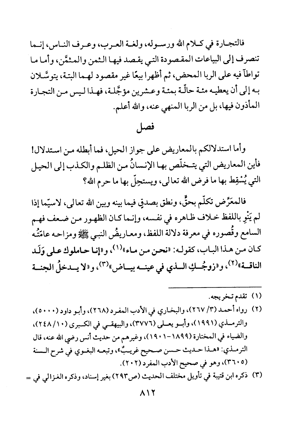 وأما استدلالكم بالمعاريض على جواز الحيل، فما أبطله من استدلال! فأين المعاريض التي يتخلّص بها الإنسانُ من الظلم والكذب إلى الحيل التي يُسْقِط بها ما فرض الله تعالى، ويستحِلّ بها ما حرم الله؟