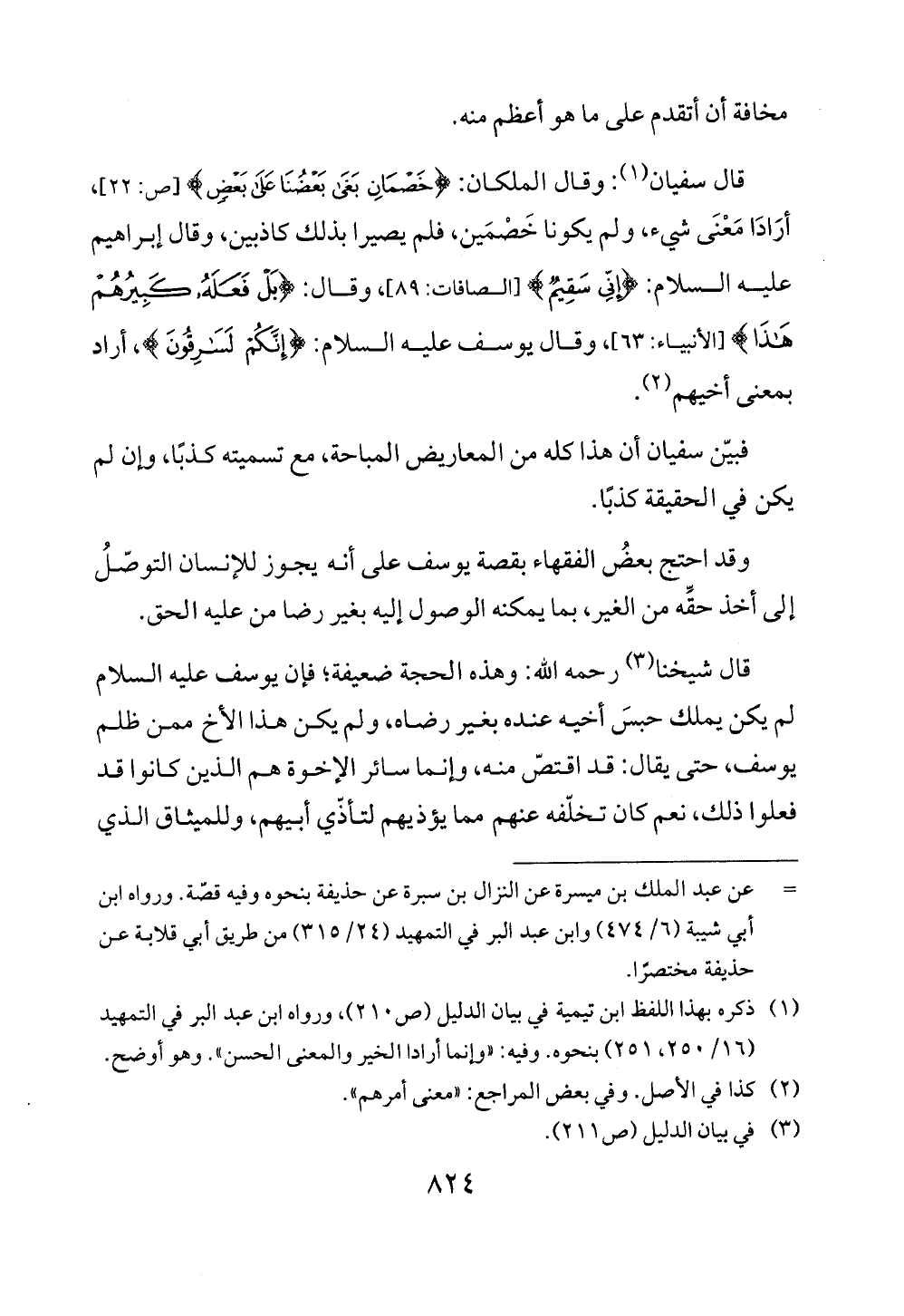 قال شيخنا (¬3) رحمه الله: وهذه الحجة ضعيفة؛ فإن يوسف عليه السلام لم يكن يملك حبسَ أخيه عنده بغير رضاه، ولم يكن هذا الأخ ممن ظلم يوسف، حتى يقال: قد اقتصّ منه، وإنما سائر الإخوة هم الذين كانوا قد فعلوا ذلك، نعم كان تخلّفه عنهم مما يؤذيهم لتأذّي أبيهم، وللميثاق الذي