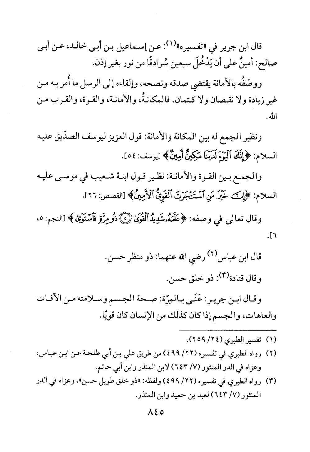 وقال تعالى في وصفه: {عَلَّمَهُ شَدِيدُ الْقُوَى (5) ذُو مِرَّةٍ فَاسْتَوَى} [النجم: 5، 6].