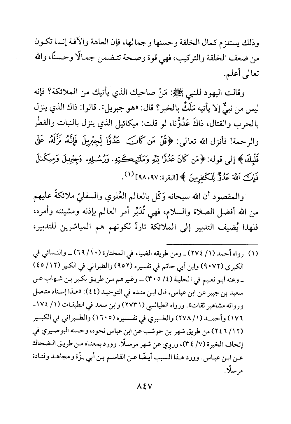 (¬1) رواه أحمد (1/ 274) - ومن طريقه الضياء في المختارة (10/ 69) - والنسائي في الكبرى (9072) وابن أبي حاتم في تفسيره (952) والطبراني في الكبير (12/ 45) - وعنه أبو نعيم في الحلية (4/ 305) - وغيرهم من طريق بكير بن شهاب عن سعيد بن جبير عن ابن عباس، قال ابن منده في التوحيد (44): "هذا إسناد متصل ورواته مشاهير ثقات". ورواه الطيالسي (2731) وابن سعد في الطبقات (1/ 174 - 176) وأحمد (1/ 278) والطبري في تفسيره (1605) والطبراني في الكبير (12/ 246) من طريق شهر بن حوشب عن ابن عباس نحوه، وحسنه البوصيرى في إتحات الخيرة (7/ 34)، وروِي عن شهر موسلًا. وورد بمعناه من طريق الضّحاك عن ابن عباس. وورد هذا السبب أيضًا عن القاسم بن أبي بزّة ومجاهد وقتادة مرسلًا.