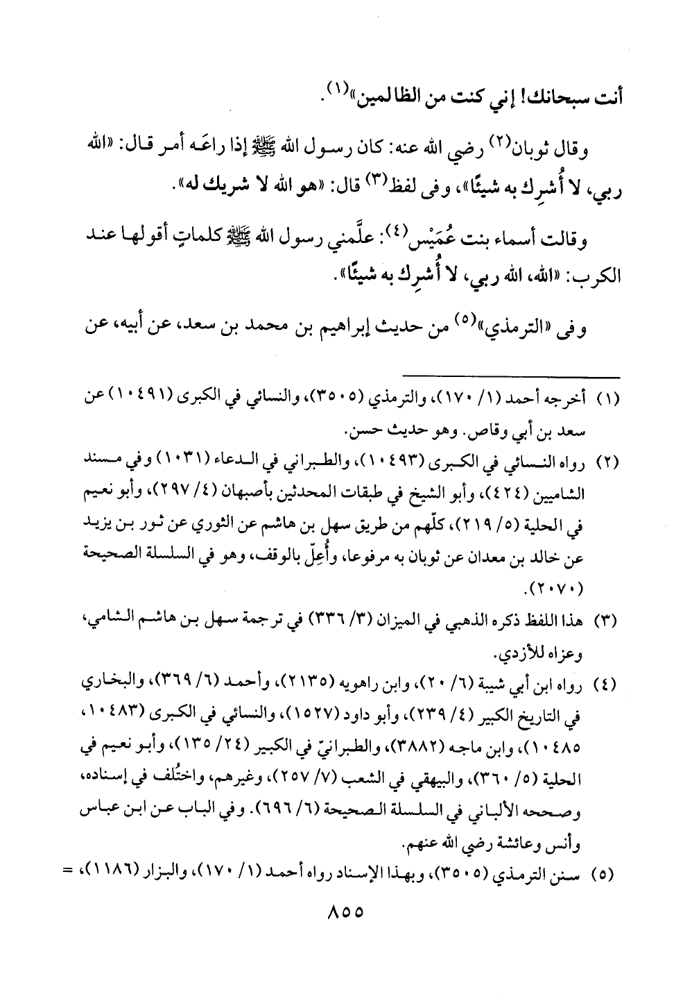 (¬2) رواه النسائي في الكبرى (10493)، والطبراني في الدعاء (1031) وفي مسند الشاميين (424)، وأبو الشيخ في طبقات المحدثين بأصبهان (4/ 297)، وأبو نعيم في الحلية (5/ 219)، كلّهم من طريق سهل بن هاشم عن الثوري عن ثور بن يزيد عن خالد بن معدان عن ثوبان به مرفوعا، وأُعِلّ بالوقف، وهو في السلسلة الصحيحة (2070).