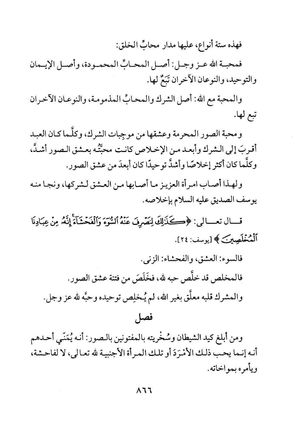 فالمخلص قد خلَّص حبه لله، فخَلَصَ من فتنة عشق الصور.
