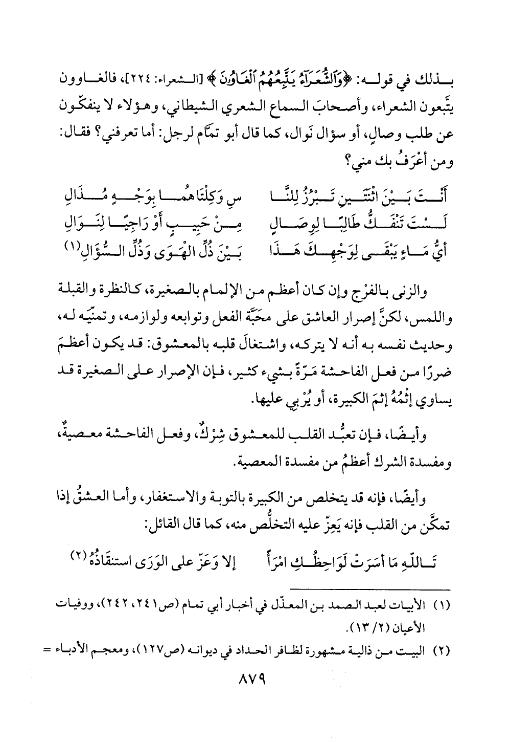 بذلك في قوله: {وَالشُّعَرَاءُ يَتَّبِعُهُمُ الْغَاوُونَ} [الشعراء: 224]، فالغاوون يتَّبعون الشعراء، وأصحابَ السماع الشعري الشيطاني، وهؤلاء لا ينفكّون عن طلب وصالٍ، أو سؤال نَوال، كما قال أبو تمَّام لرجل: أما تعرفني؟ فقال: ومن أعْرَفُ بك مني؟