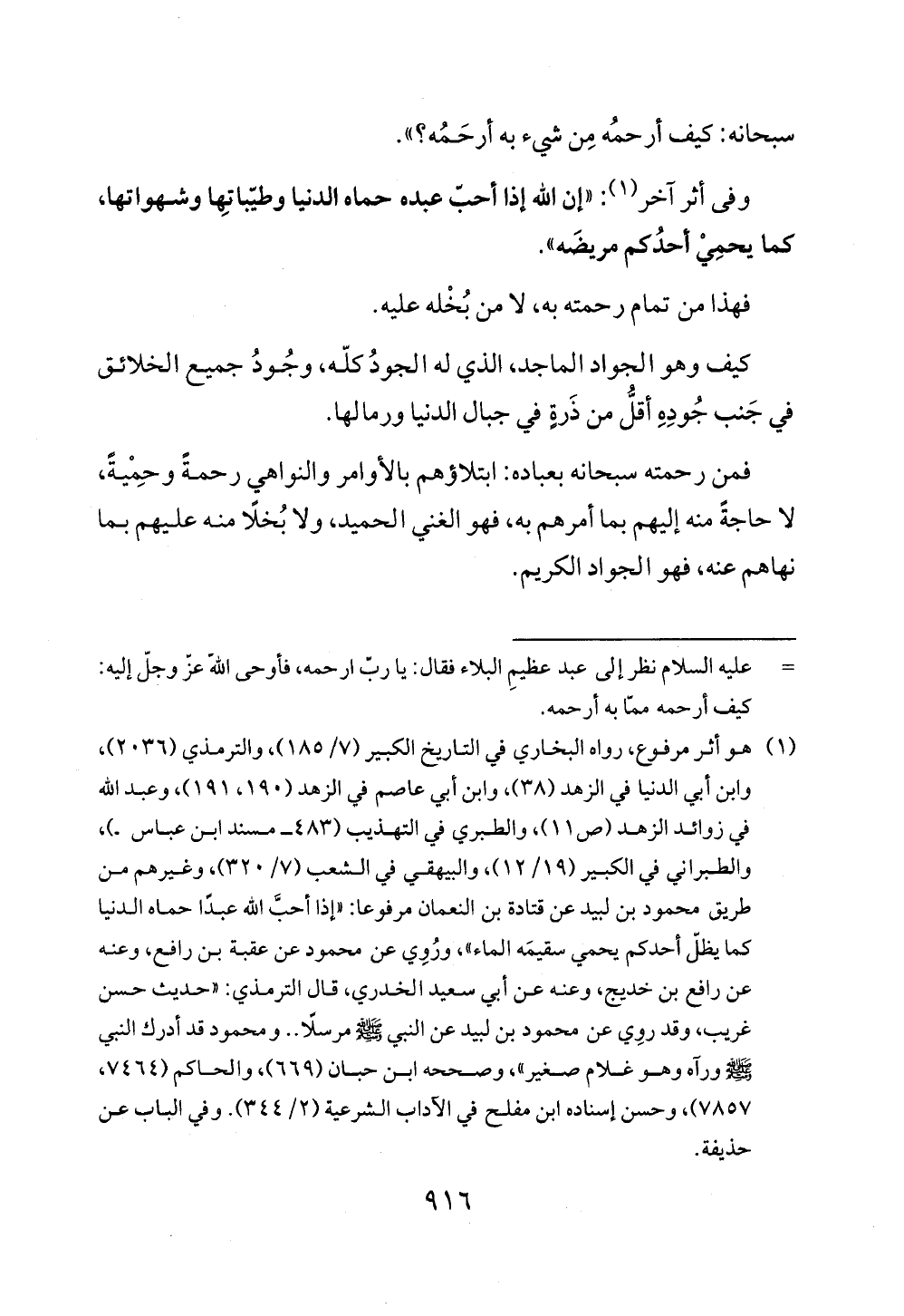 وفى أثر آخر (¬1): "إن الله إذا أحب عبده حماه الدنيا وطيّباتهِا وشهواتها، كما يحمِيْ أحدُكم مريضَه".