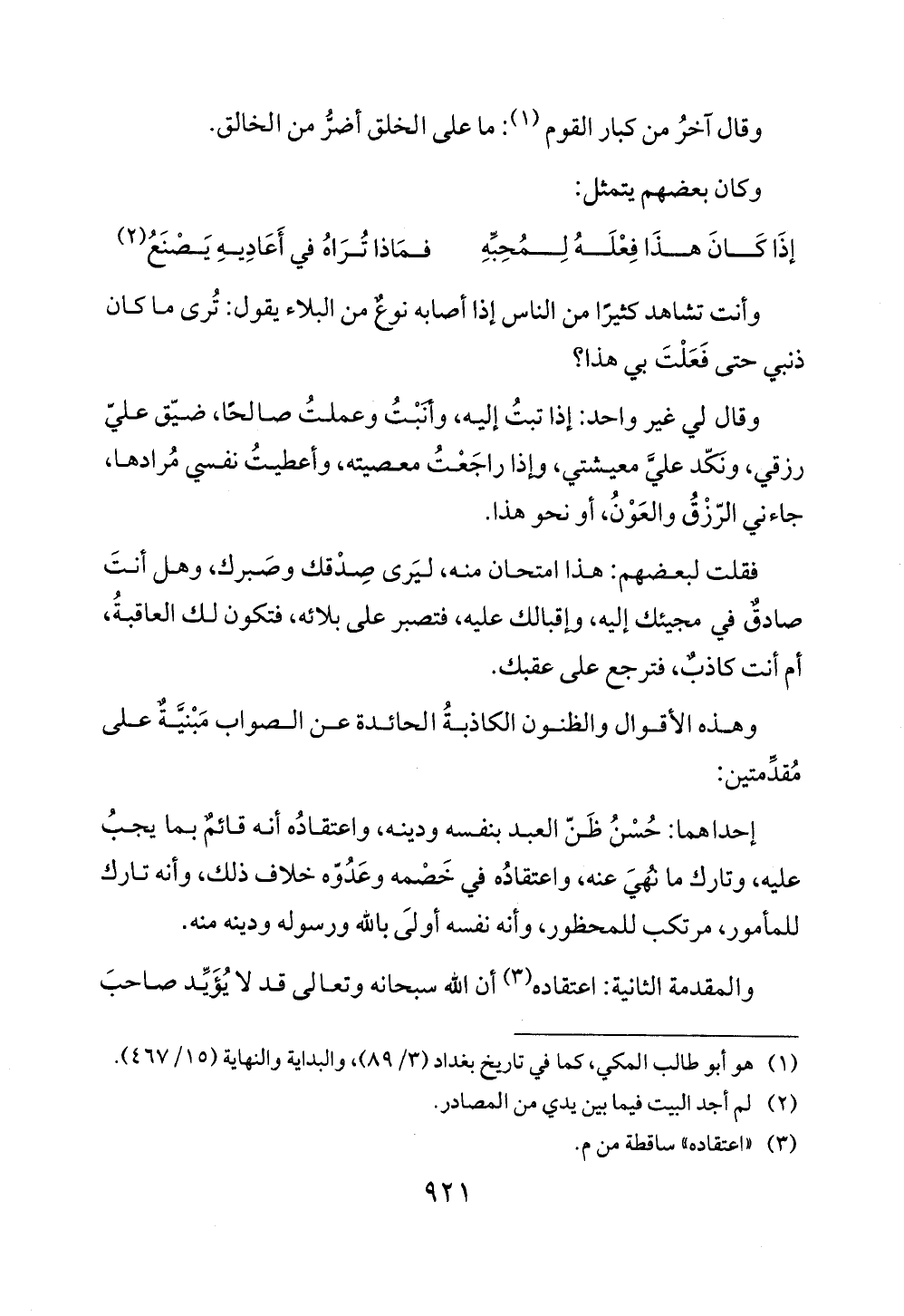 والمقدمة الثانية: اعتقاده (¬3) أن الله سبحانه وتعالى قد لا يُؤَيِّد صاحبَ
